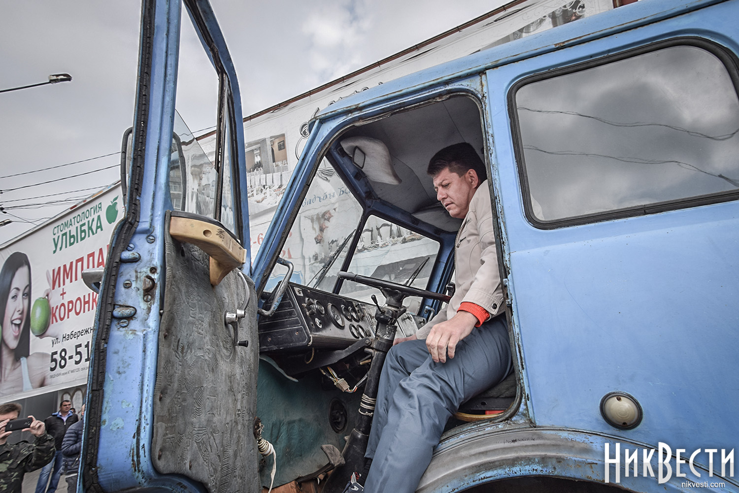 Депутат от «Оппоблока» Олег Солтыс запрыгнул в грузовик коммунальной службы и остановил двигатель, чтобы не допустить демонтаж