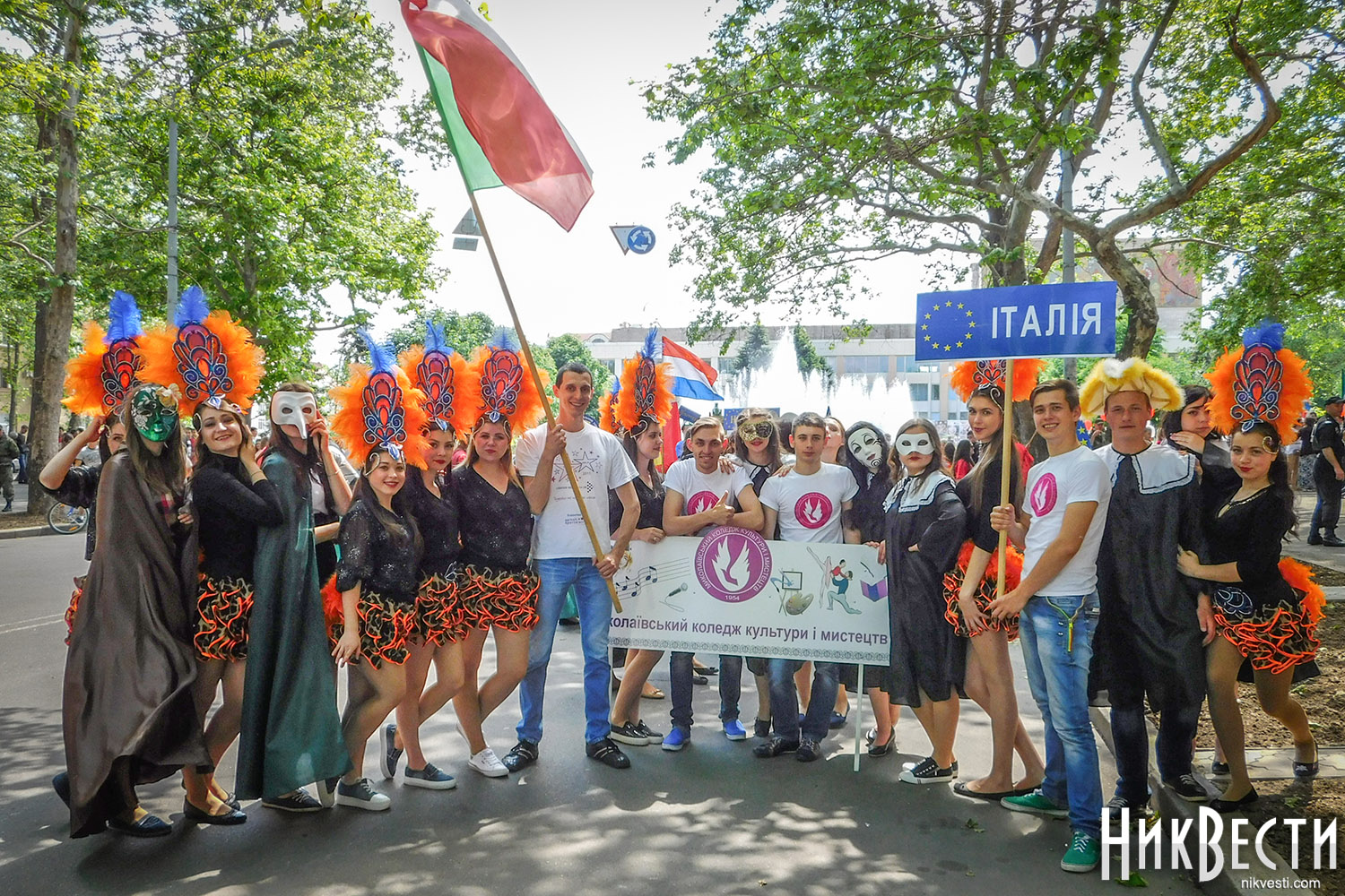 Отметим, парад европейских стран был сформирован из студенческих команд николаевских вузов, которые ранее путем жеребьевки получили государство для презентации. В шествии приняли участие все 28 стран Европейского союза.