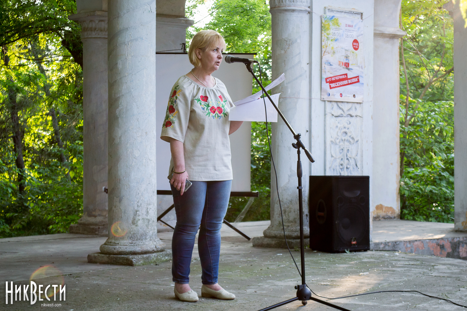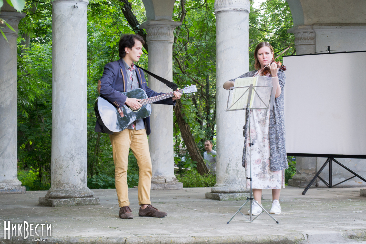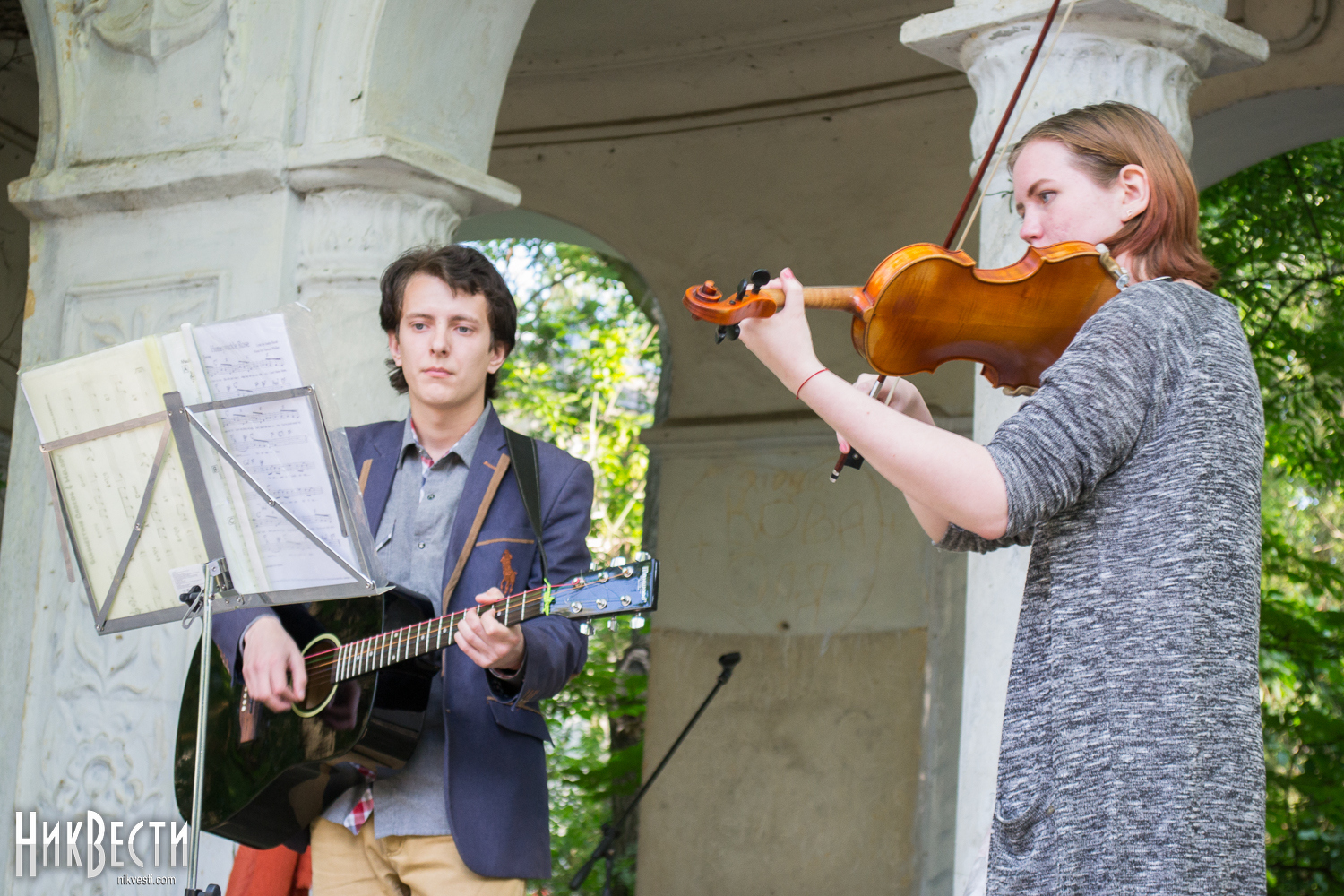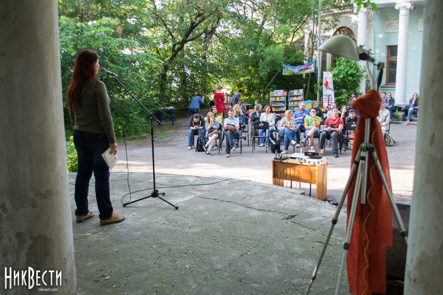 После этого настало время для поэтической части вечера. В приобретшем в последнее время популярность бывшем доме отдыха «Коммунар» на улице Спортивной была организована летняя площадка. Для маленьких николаевцев здесь работала «Площадка сказок», созданная сотрудниками Центральной библиотеки для детей имени Шуры Кобера и Вити Хоменко. Рядом расположилась благотворительная «сушка» акварельных открыток художницы Жанны Величко. Также в этот вечер работал буфет, организованный арт-кафе «Депо». Музыкальную атмосферу фестиваля обеспечили: струнный дуэт Ильи Османова и Алины Кагало, а также гитаристы Сергей Бутенко и Олег Палам.