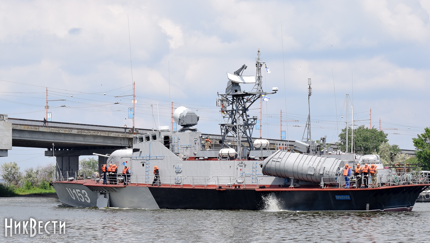Сегодня, 27 мая, в 12 часов дня в Николаеве развели Ингульский и Варваровский мосты, чтобы выпустить из акватории государственного предприятия «Судостроительный завод имени 61 коммунара» ракетный катер «Прилуки».