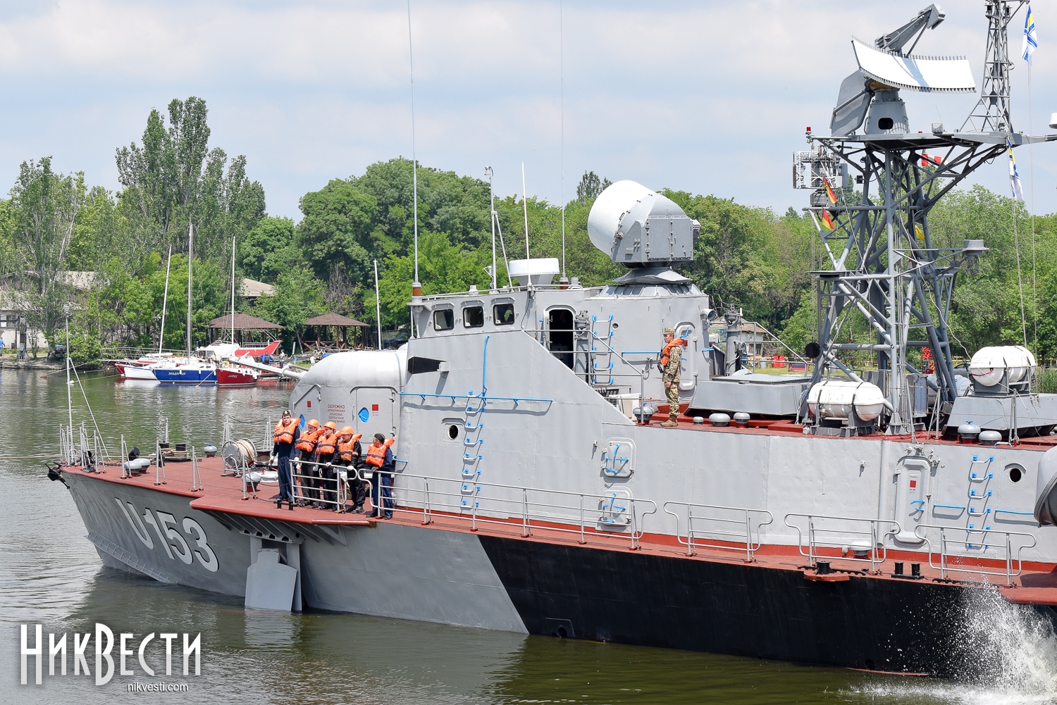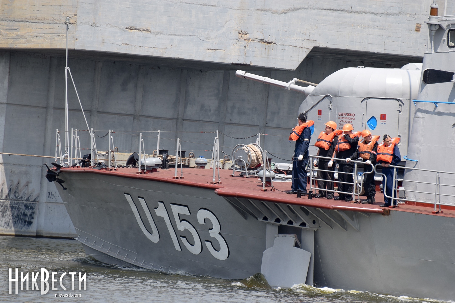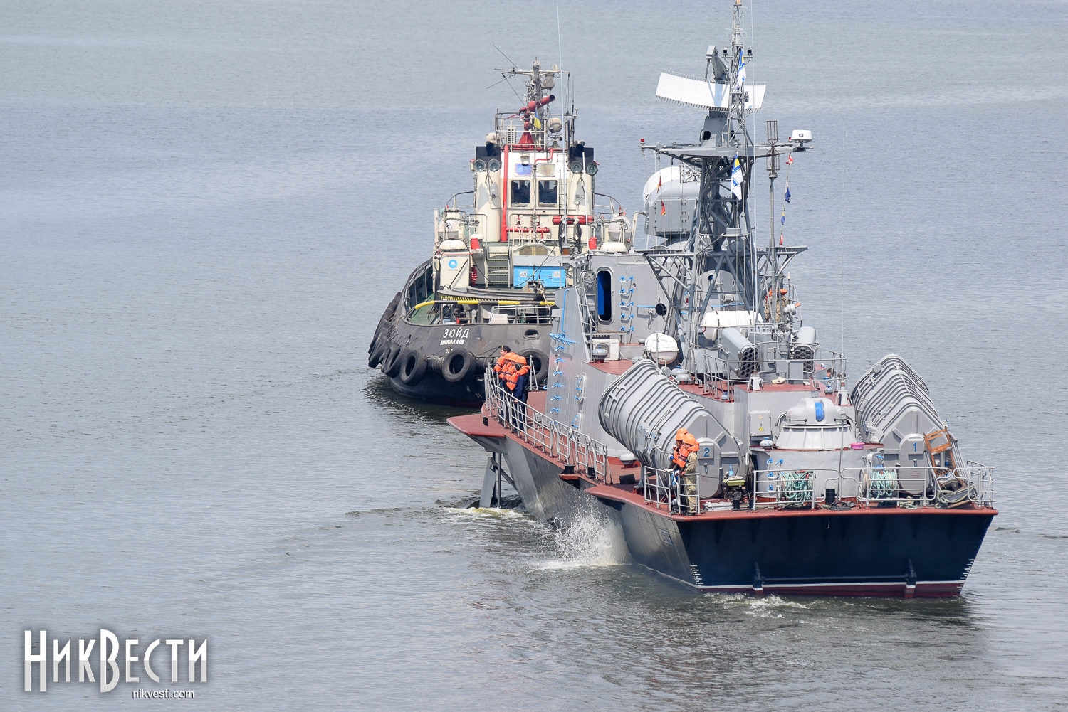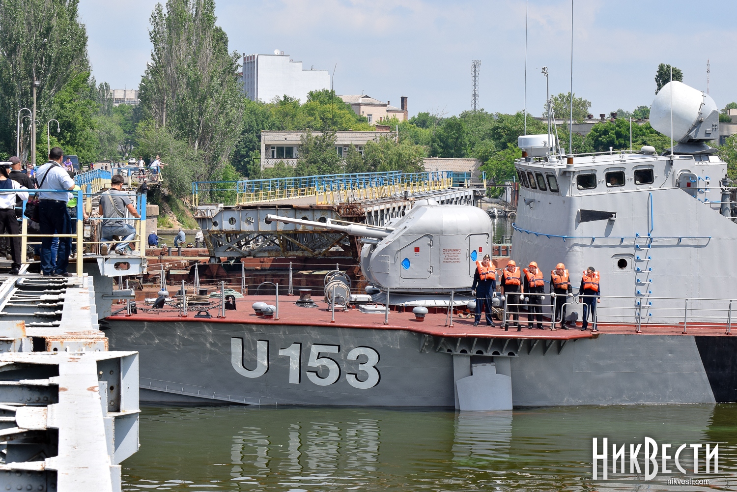 Разводка Ингульского моста началась точно по графику. Военный корабль на буксир взяло судно «Зюйд». На набережной Ингула собралось большое количество горожан, которые не могли упустить возможность пофотографировать такое событие и друг друга на фоне ракетного катера.