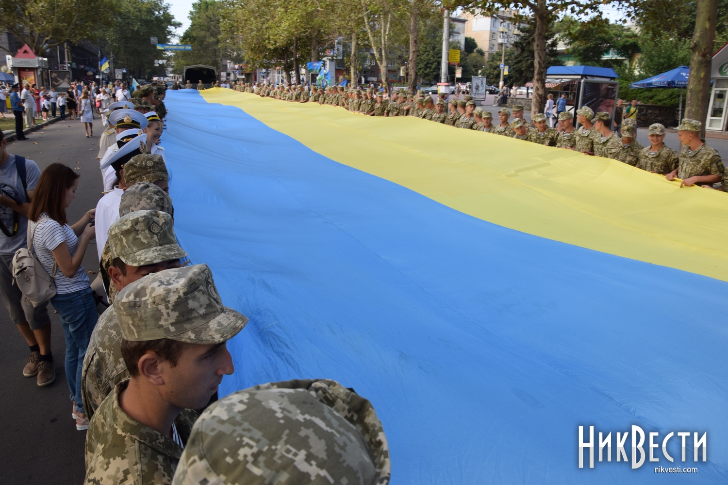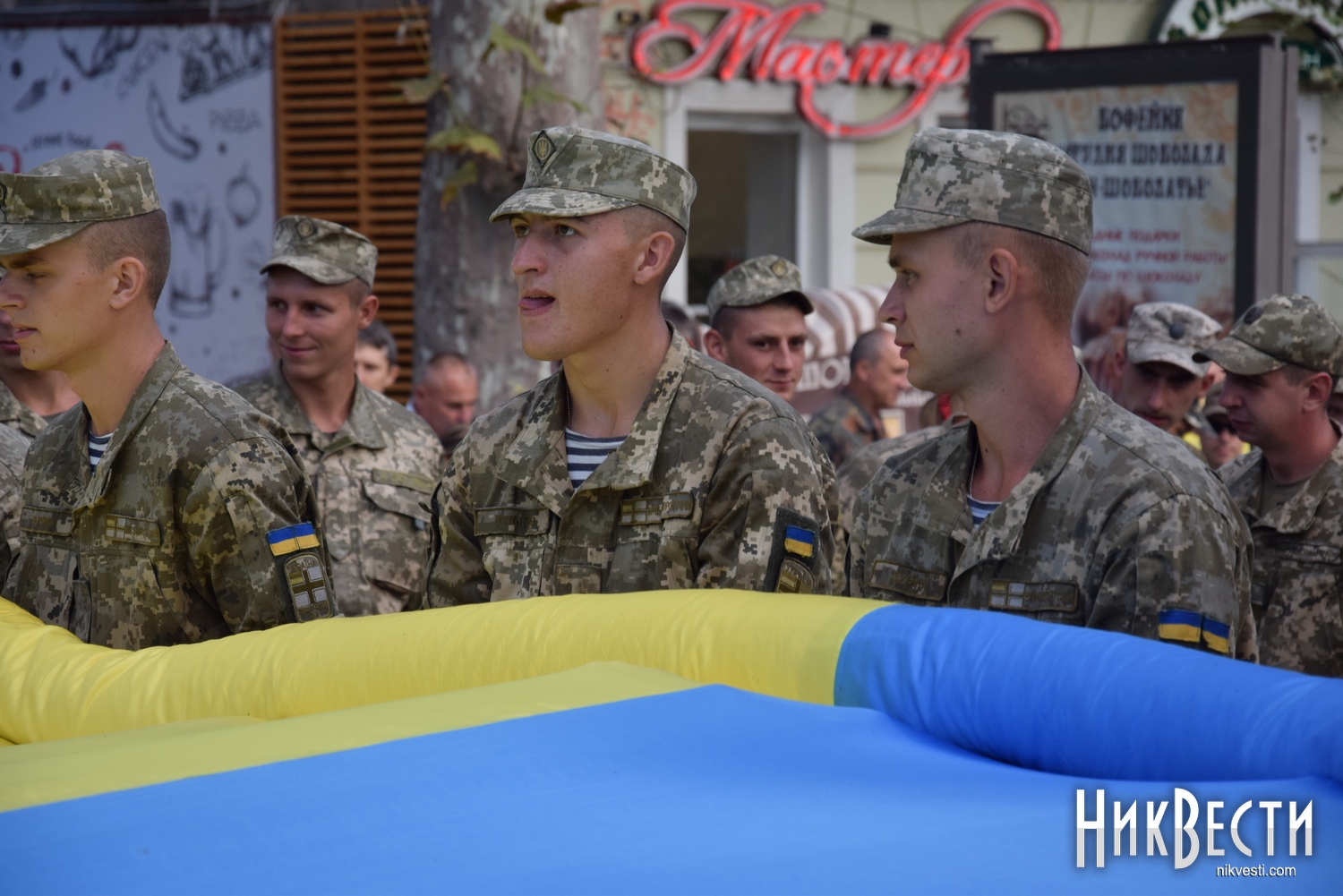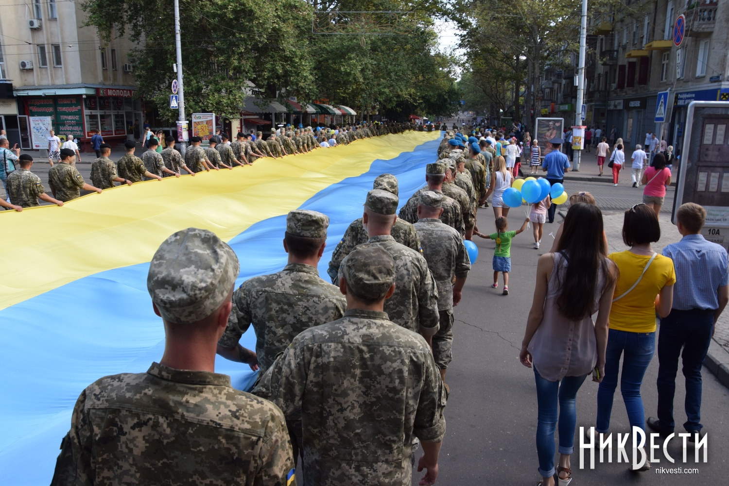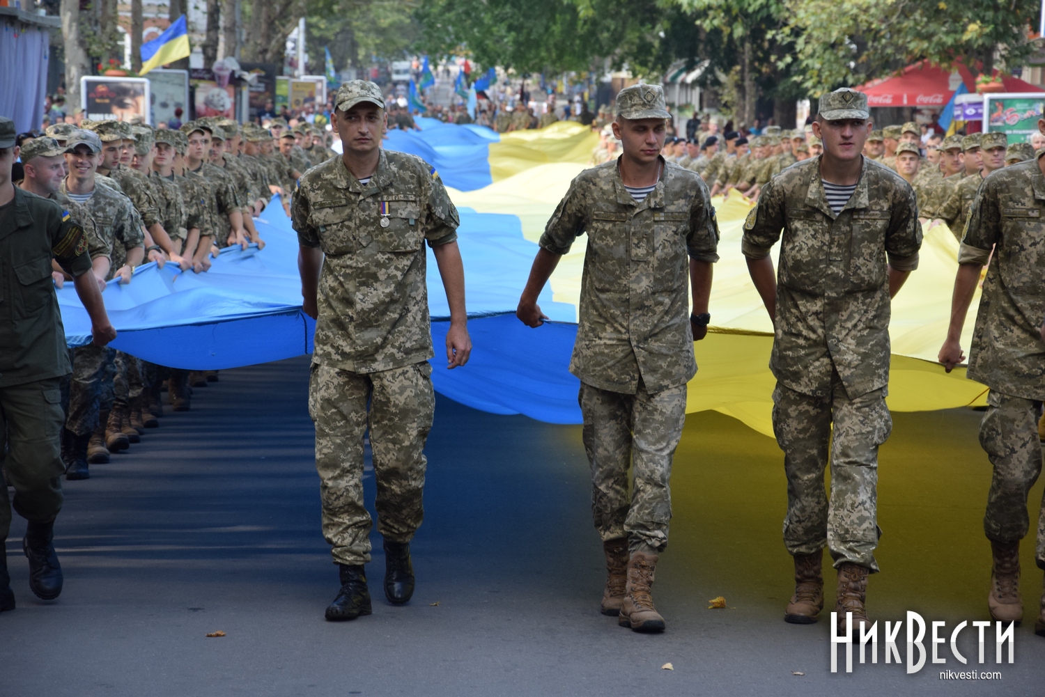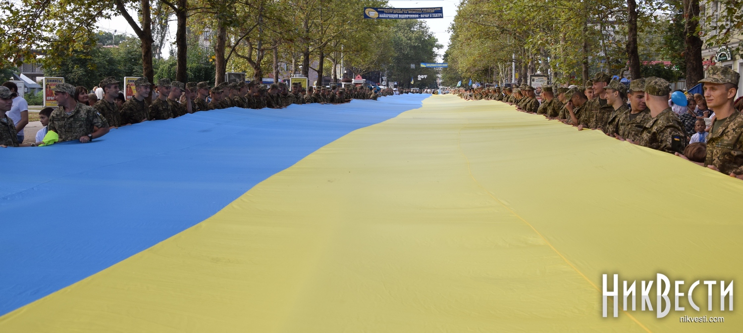 День Независимости в Николаеве начался с шествия военных и 150-метрового флага