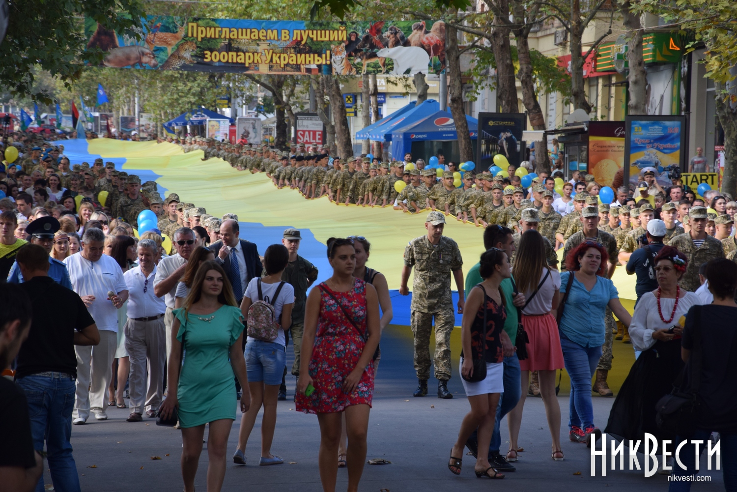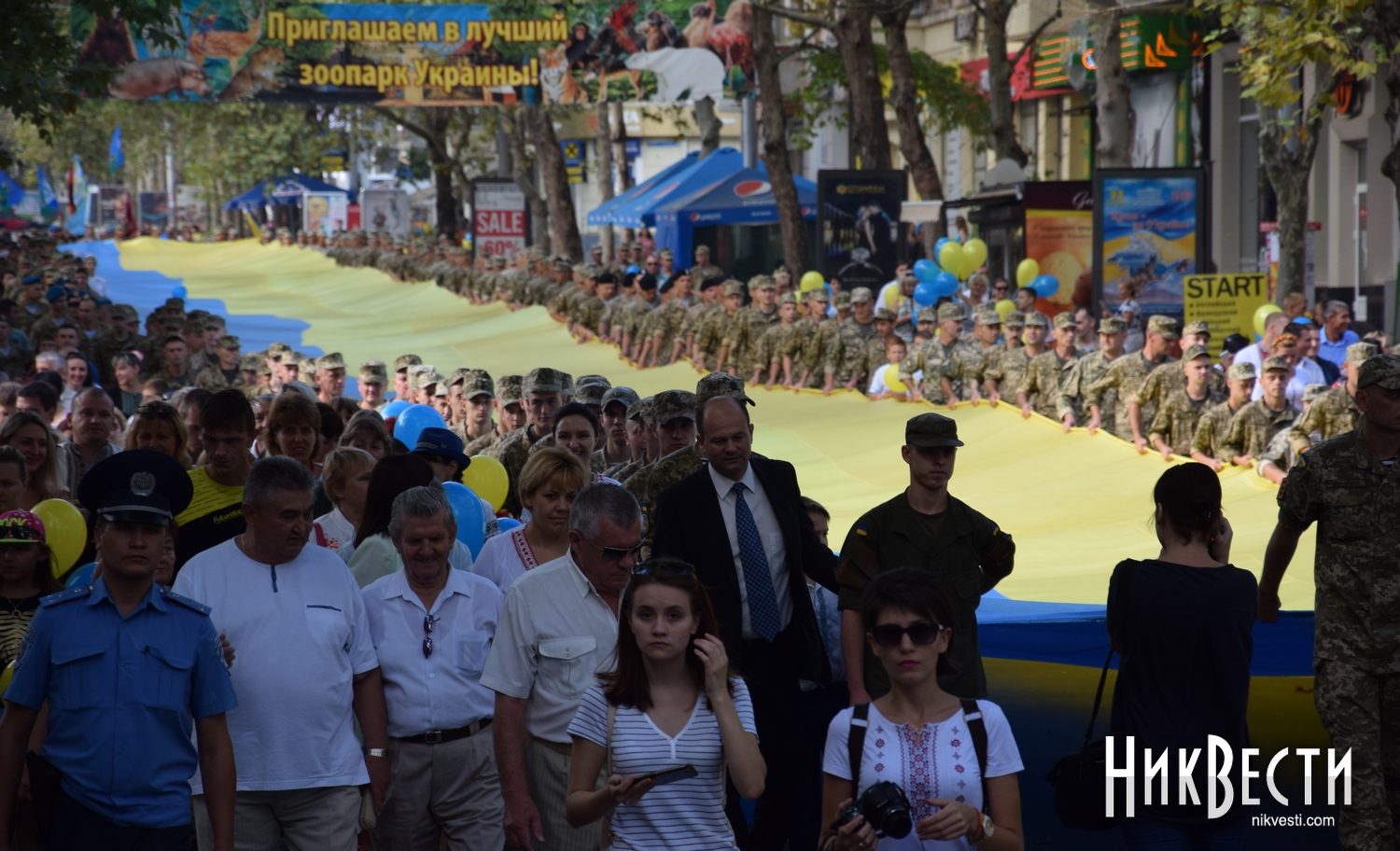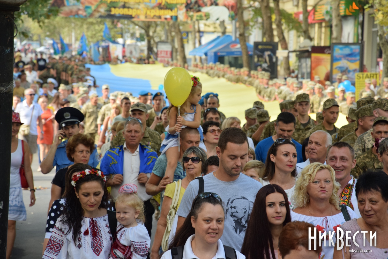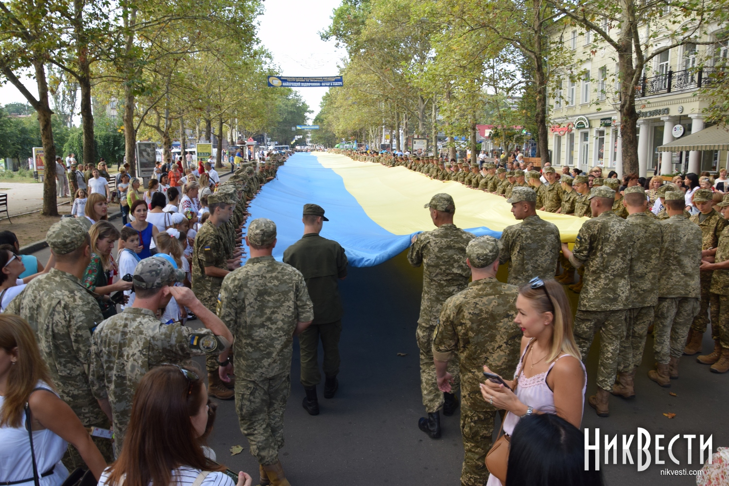 День Независимости в Николаеве начался с шествия военных и 150-метрового флага