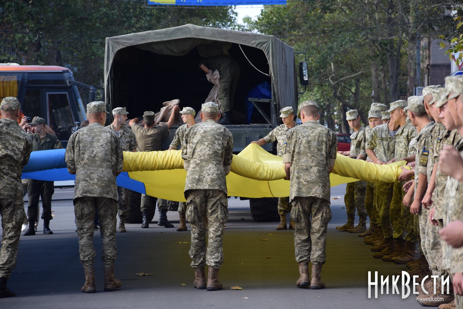 Все началось с шествия военных и волонтеров с большим Государственным флагом, - передает корреспондент НикВестей.