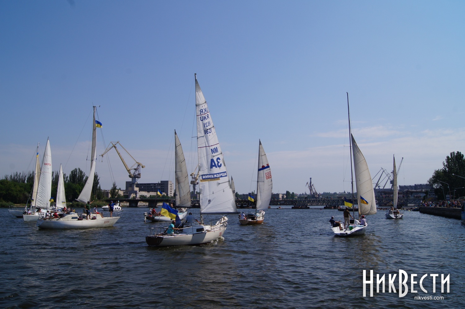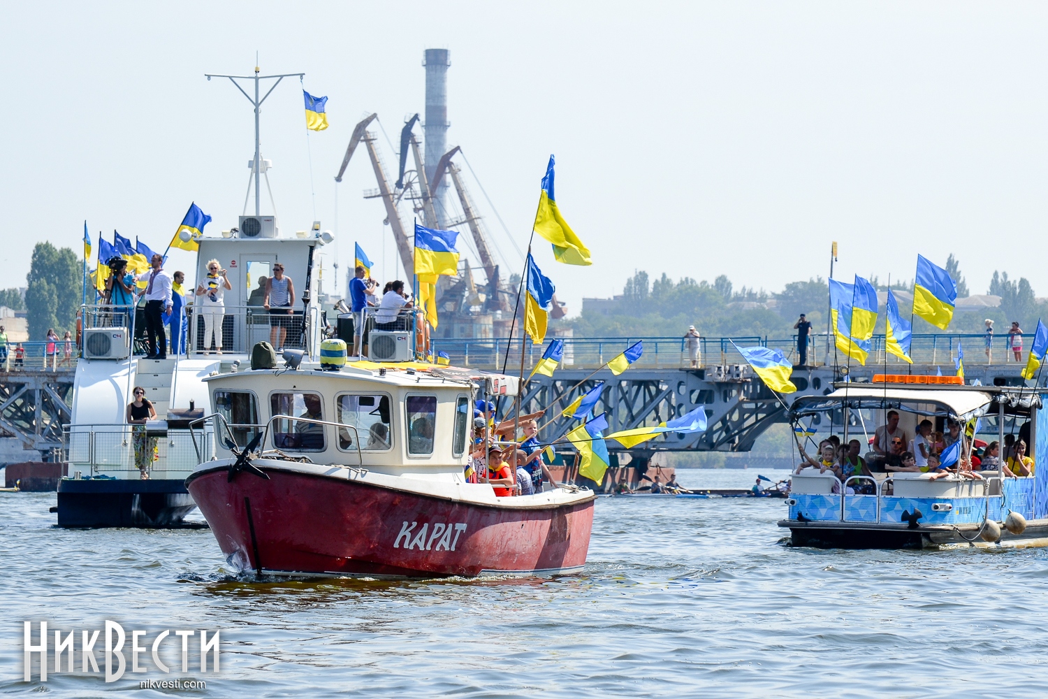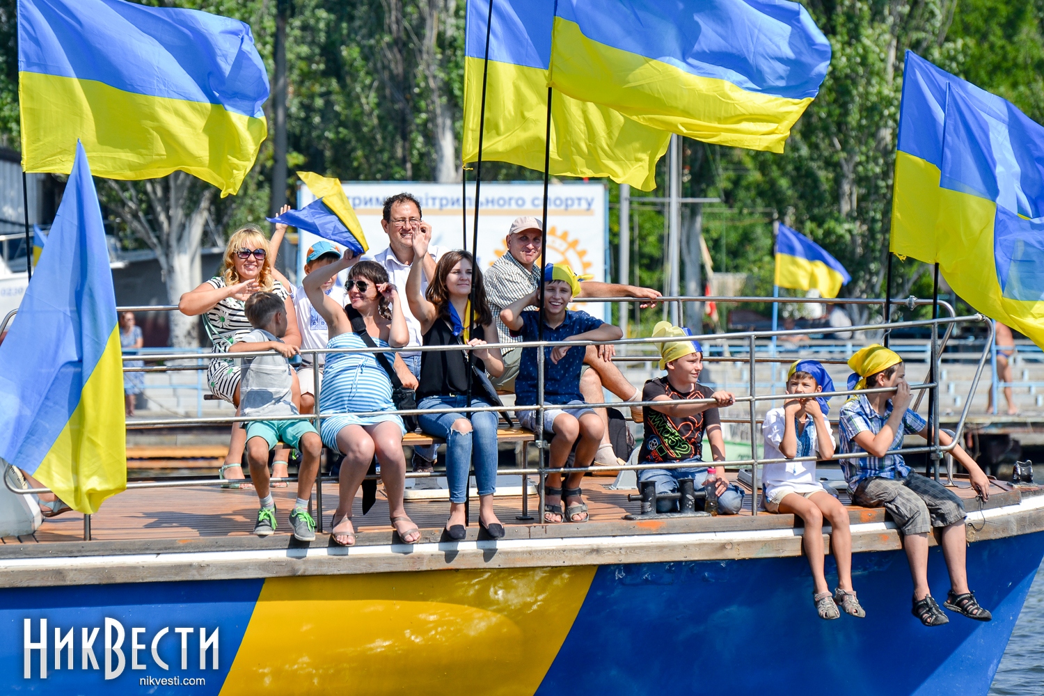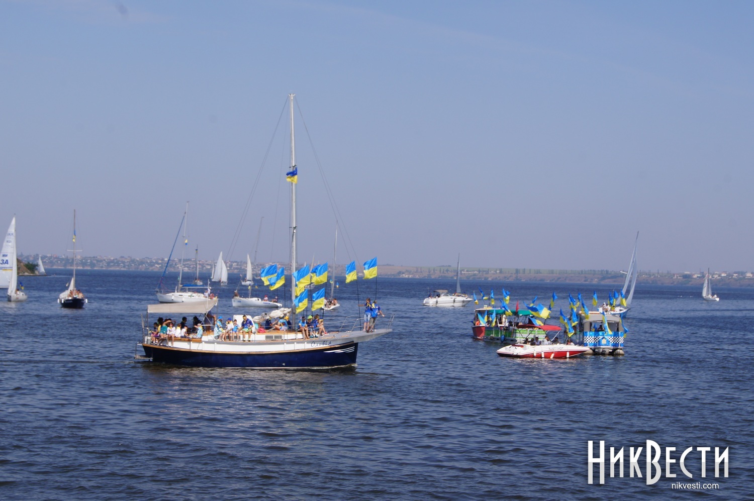Всего в праздничном мероприятии задействовали 35 крейсерских яхт, 70 лодок байдарок и каноэ, 50 парусных лодок отделения парусного спорта КДЮСШ и областного яхт-клуба. Ну, а самое главное, Николаев в этом году замахнулся на рекорд по числу предметов с национальной символикой на воде. Считались флаги, флажки, повязки и другие патриотические украшения. Как уверяют организаторы, победить рекорд удалось – на воде находилось 730 украинских символов.