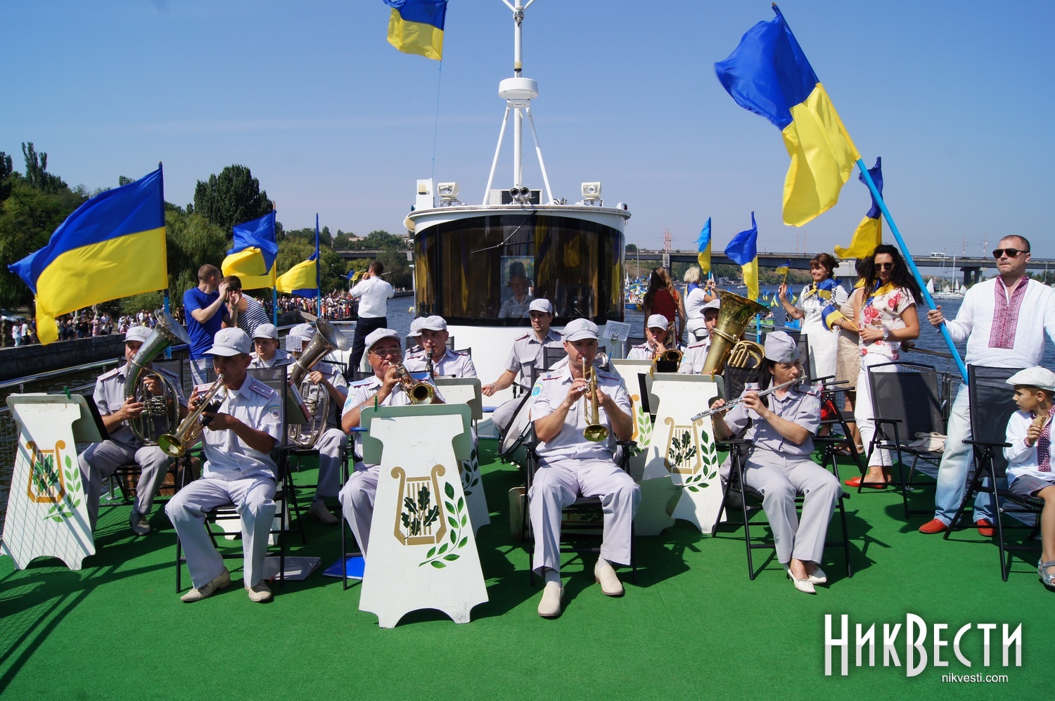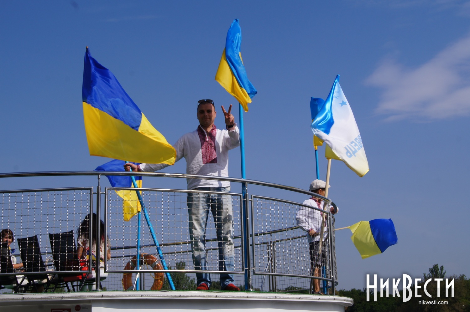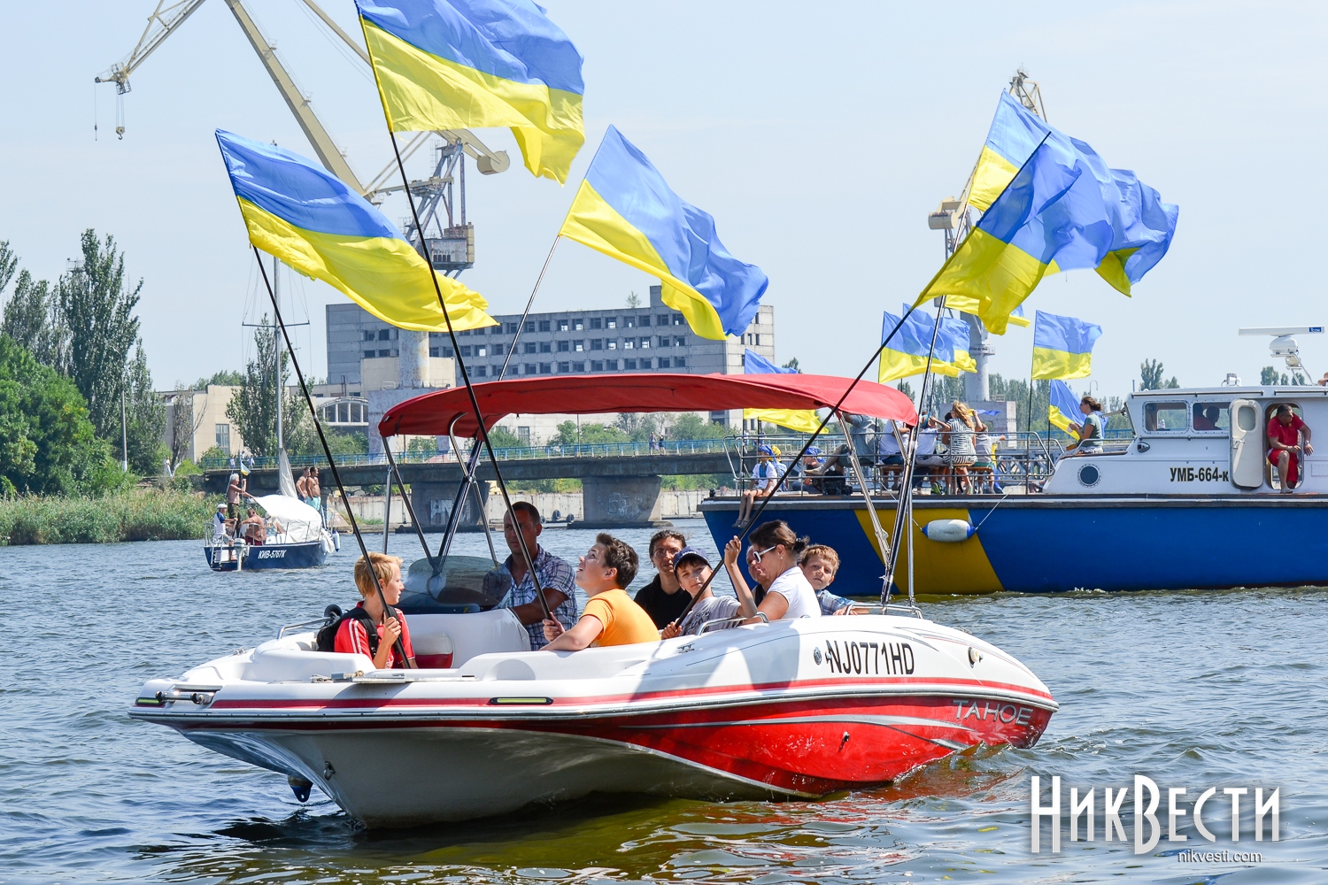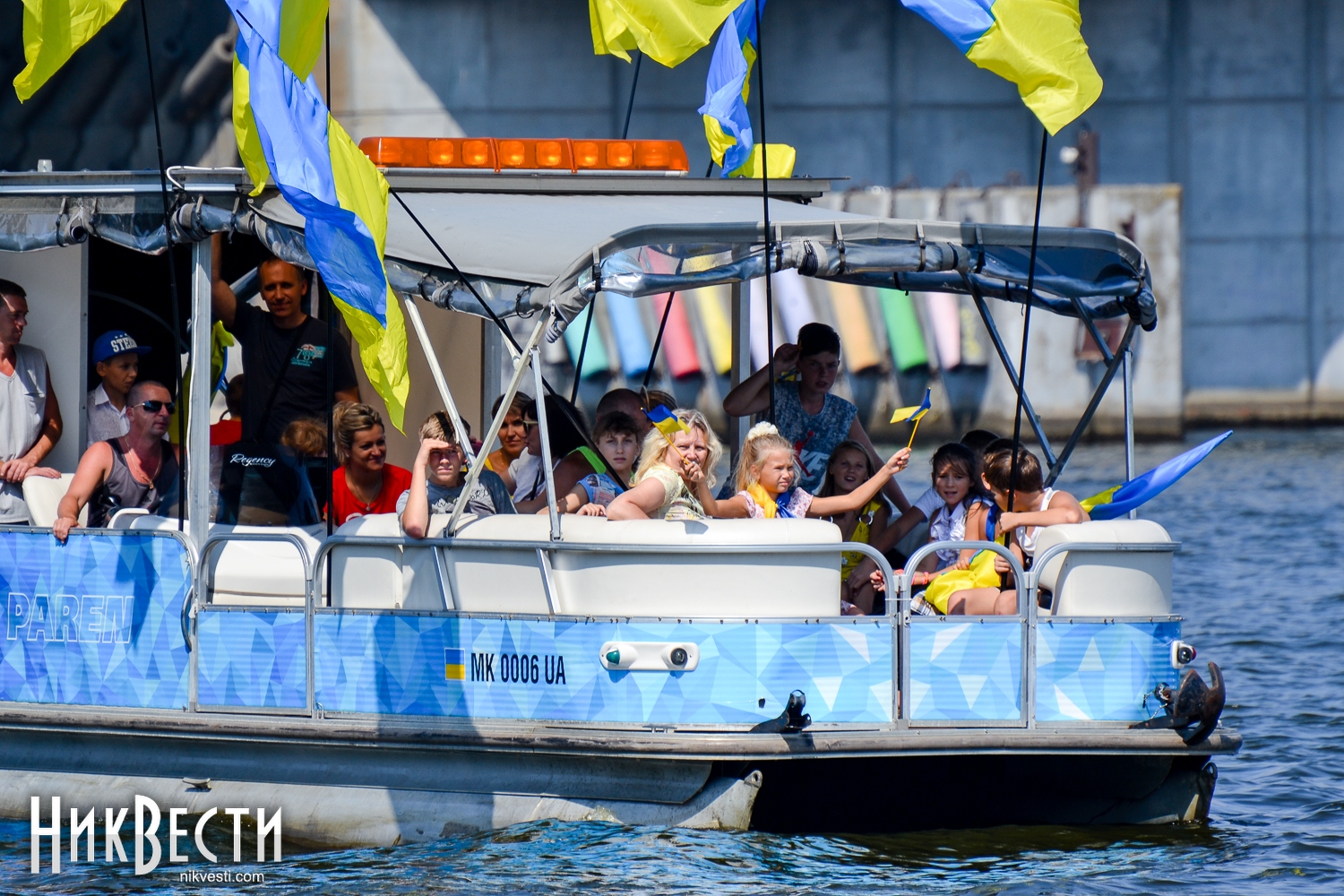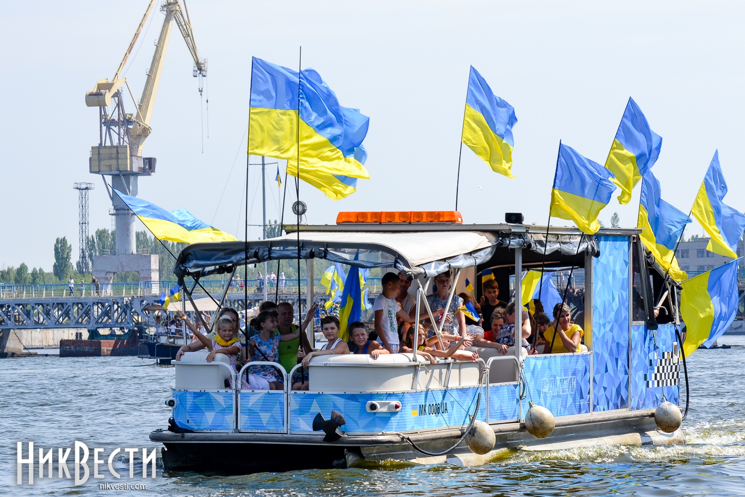 Всего в праздничном мероприятии задействовали 35 крейсерских яхт, 70 лодок байдарок и каноэ, 50 парусных лодок отделения парусного спорта КДЮСШ и областного яхт-клуба. Ну, а самое главное, Николаев в этом году замахнулся на рекорд по числу предметов с национальной символикой на воде. Считались флаги, флажки, повязки и другие патриотические украшения. Как уверяют организаторы, победить рекорд удалось – на воде находилось 730 украинских символов.