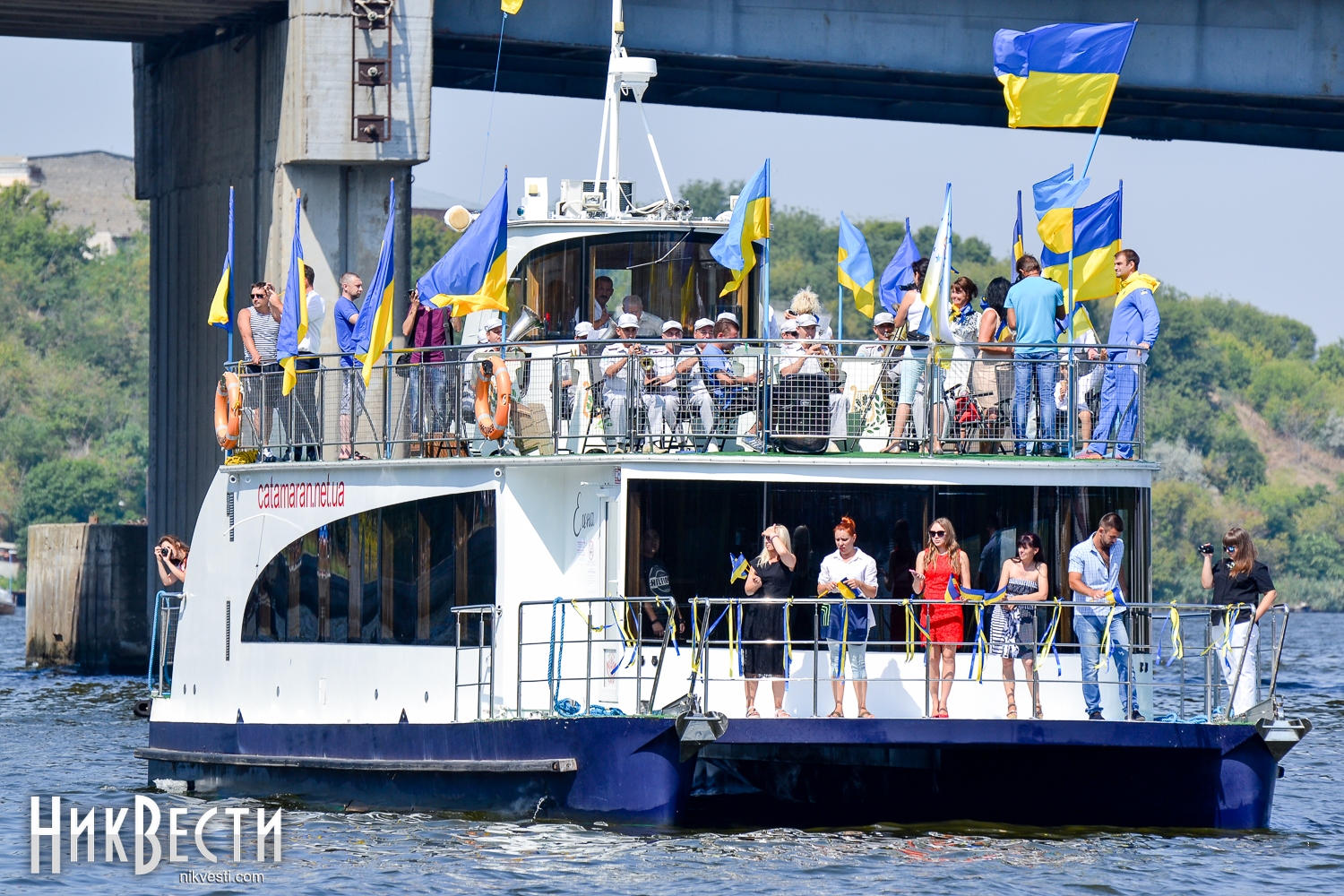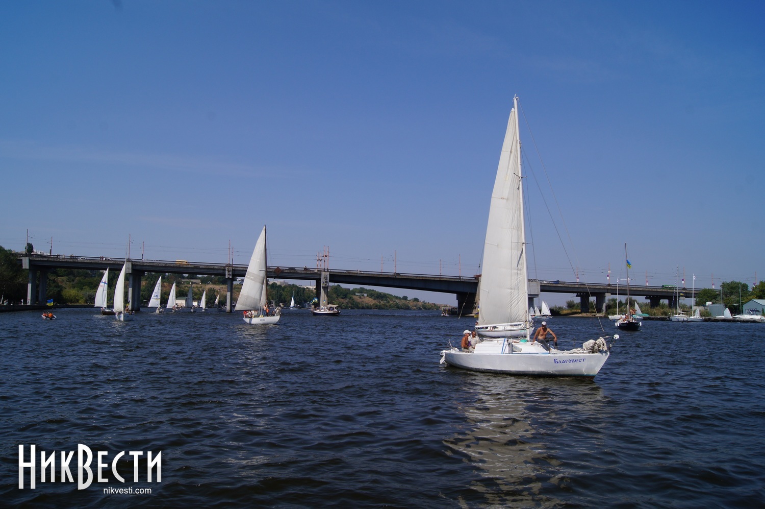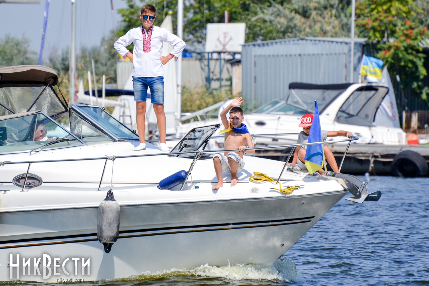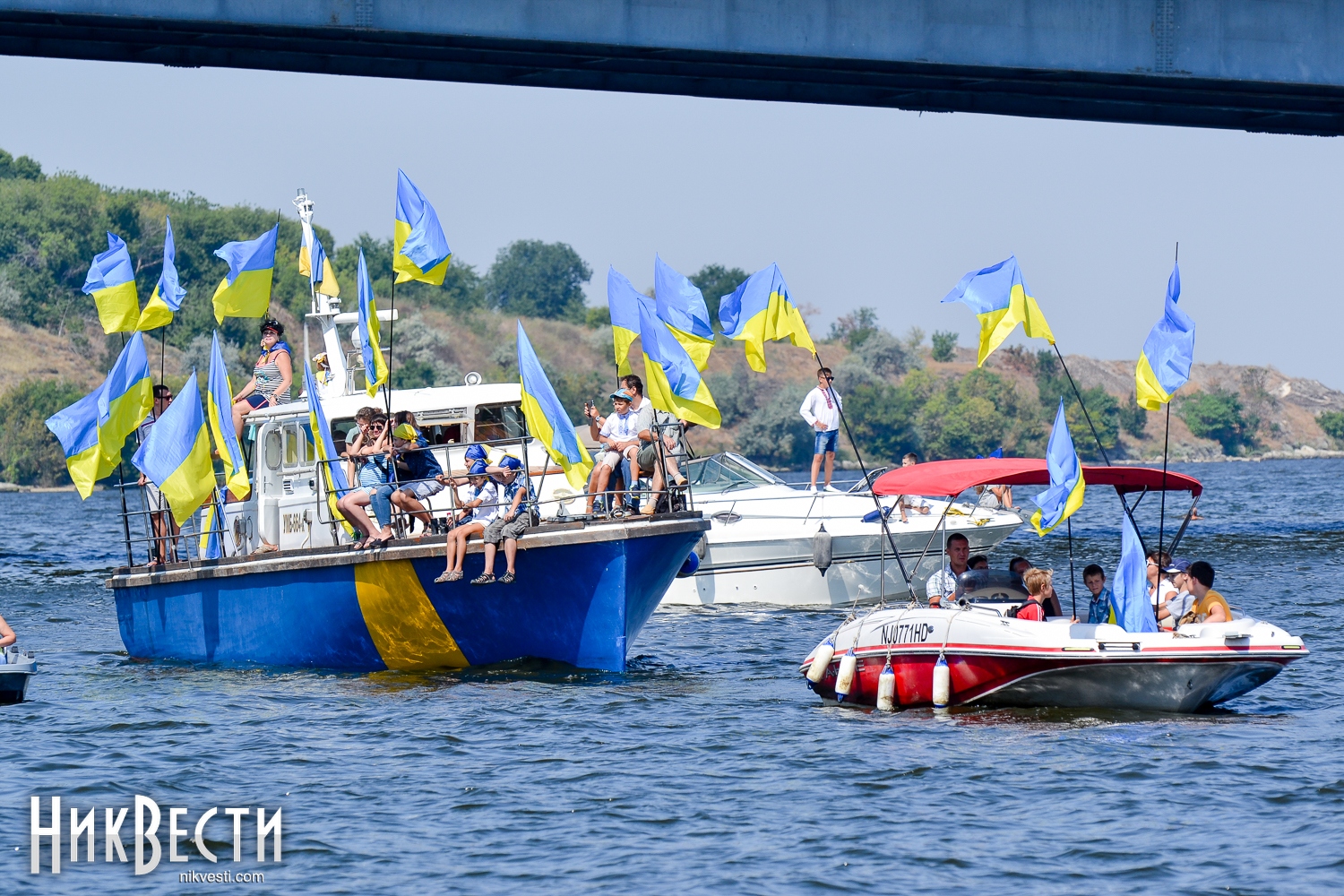 Всего в праздничном мероприятии задействовали 35 крейсерских яхт, 70 лодок байдарок и каноэ, 50 парусных лодок отделения парусного спорта КДЮСШ и областного яхт-клуба. Ну, а самое главное, Николаев в этом году замахнулся на рекорд по числу предметов с национальной символикой на воде. Считались флаги, флажки, повязки и другие патриотические украшения. Как уверяют организаторы, победить рекорд удалось – на воде находилось 730 украинских символов.