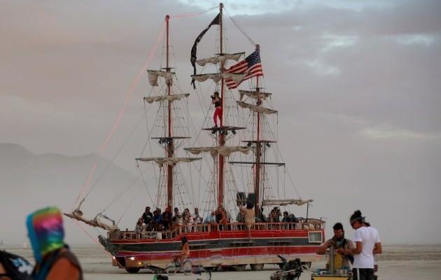 На неделю в пустыне устанавливаются произведения современного искусства, часто фантастических форм, часть которых сжигаются создателями до окончания Burning Man. Там ездят сотни "мутировавших" машин невероятного вида, многие участники ходят в костюмах персонажей искусства, зверей, предметов и т. Артисты, приезжающие в пустыню, дают концерты, популярны различные танцы. На нескольких танцполах круглосуточно работают диджеи.