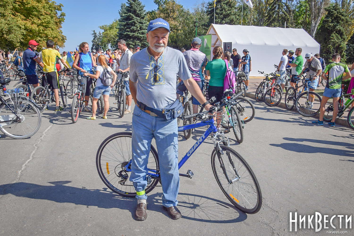 Колонну велосипедистов сегодня возглавил городской голова Николаева Александр Сенкевич. Мэр сдержал обещание и к сегодняшнему пробегу приобрел шлем, что порекомендовал сделать и другим любителям двухколесного транспорта.