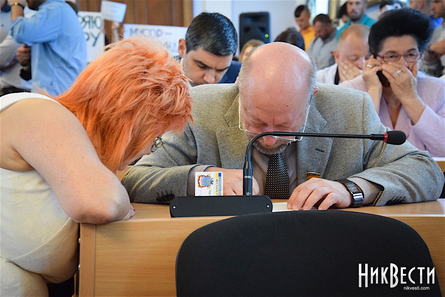 После перерыва, в ходе которого и чиновники, и депутаты, и пресса прогуливались по Набережной, пили кофе и наблюдали за бездомными животными, депутаты снова собрались в сессионном зале и, обсудив мусорную проблему, большинством голосов приняли решение запретить принимать на полигоне ТБО в Николаеве мусор, произведенный за пределами Николаевской области, поскольку «нужно сначала свои проблемы решить, а потом уже другим помогать».