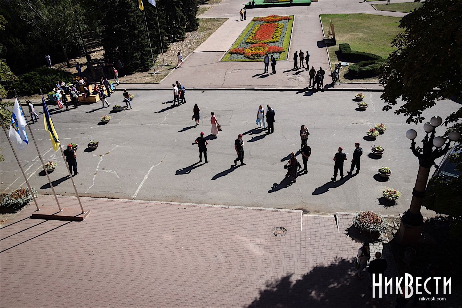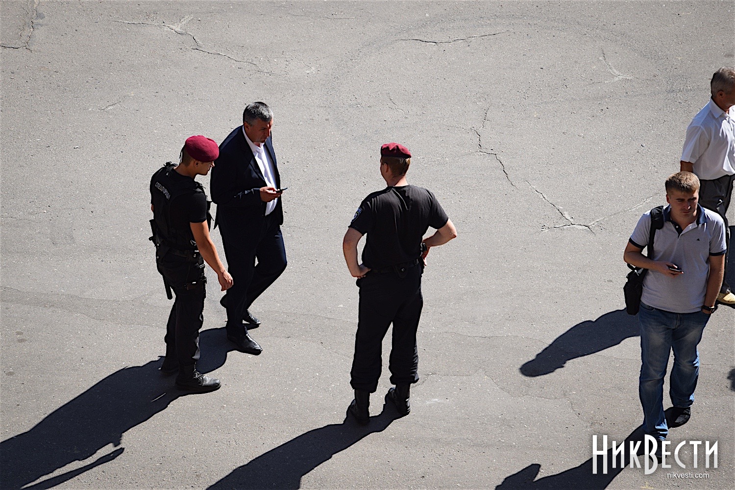 Сессию пришлось прервать на час из-за поступившего звонка о якобы минировании городского совета. Из-за этого пришлось провести эвакуацию присутствующих в здании мэрии. Но не все согласились уходить – депутаты от «Оппозиционного блока» настояли на том, что они могут выйти только из сессионного зала на время, пока специалисты проверят помещение на наличие взрывных веществ, а депутат от «Блока Петра Порошенко» Елена Киселева и вовсе отказалась покидать сессионный зал, объяснив это тем, что она «бессмертна». Неверие депутатов в то, что здание мэрии могли заминировать, можно оправдать тем, что последнее время в Николаеве очень часто кто-то что-то «минирует» то на День независимости, то во время проведения каких-либо форумов, или же во время скандальных сессий городского совета.