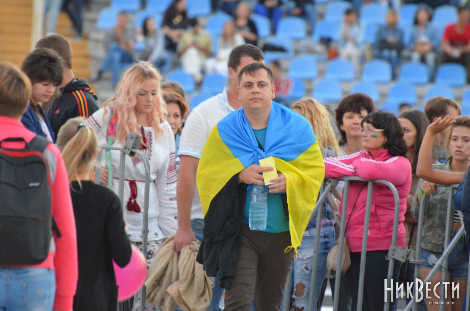 Многие были в вышиванках и с флагами Украины. Концерт начался около 20:00.