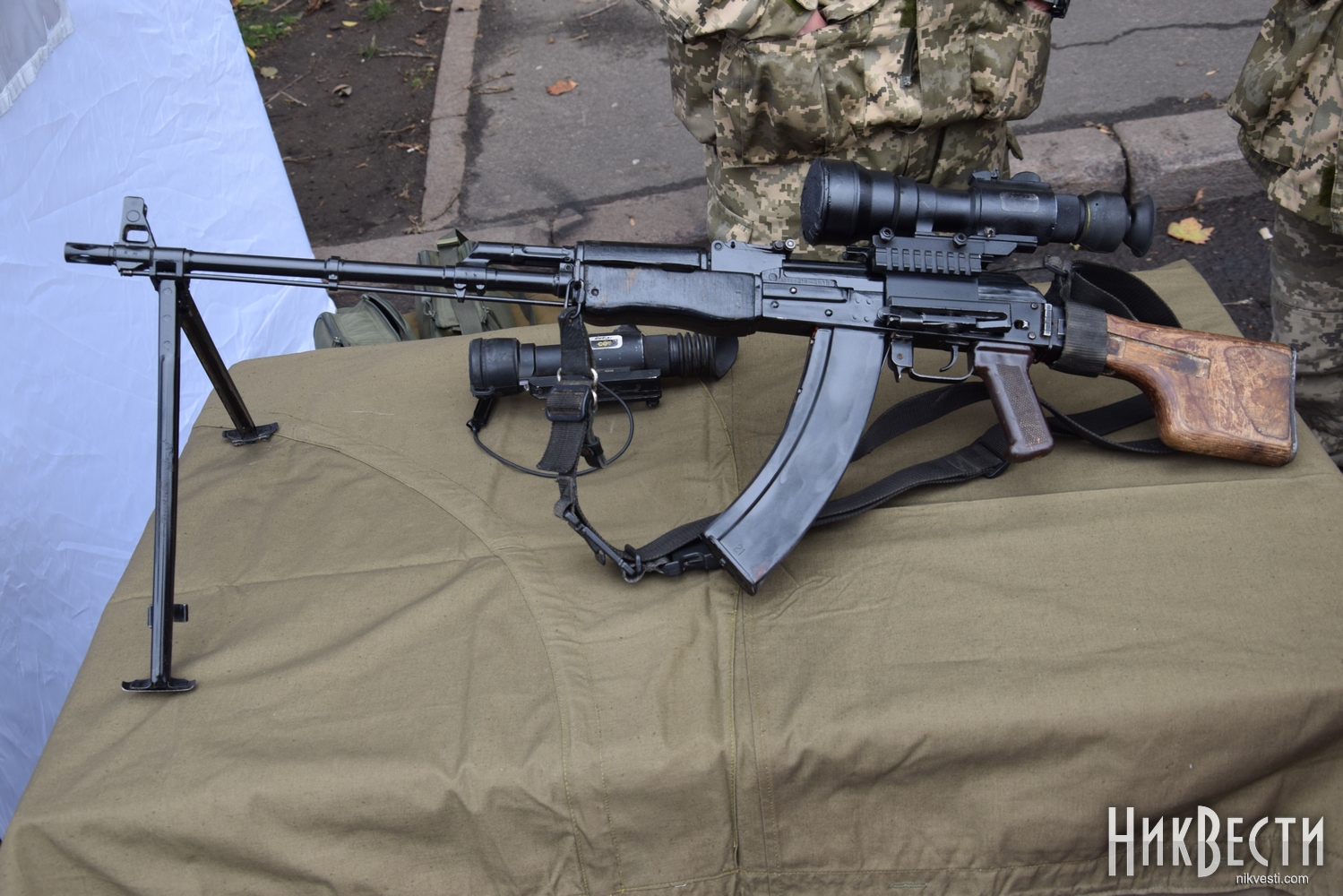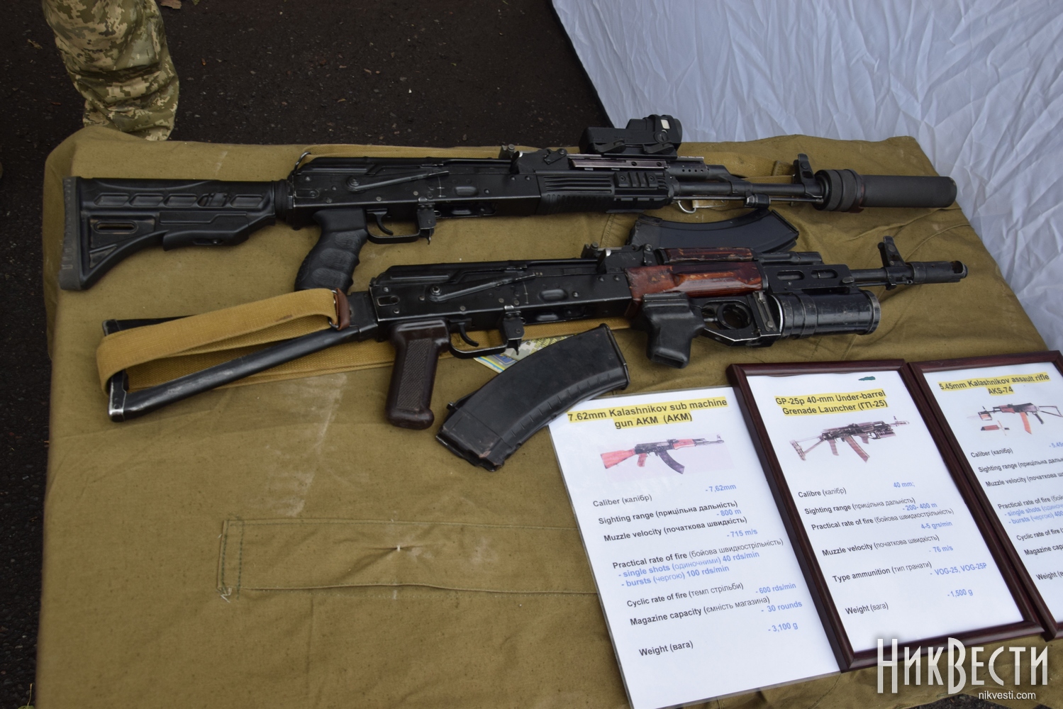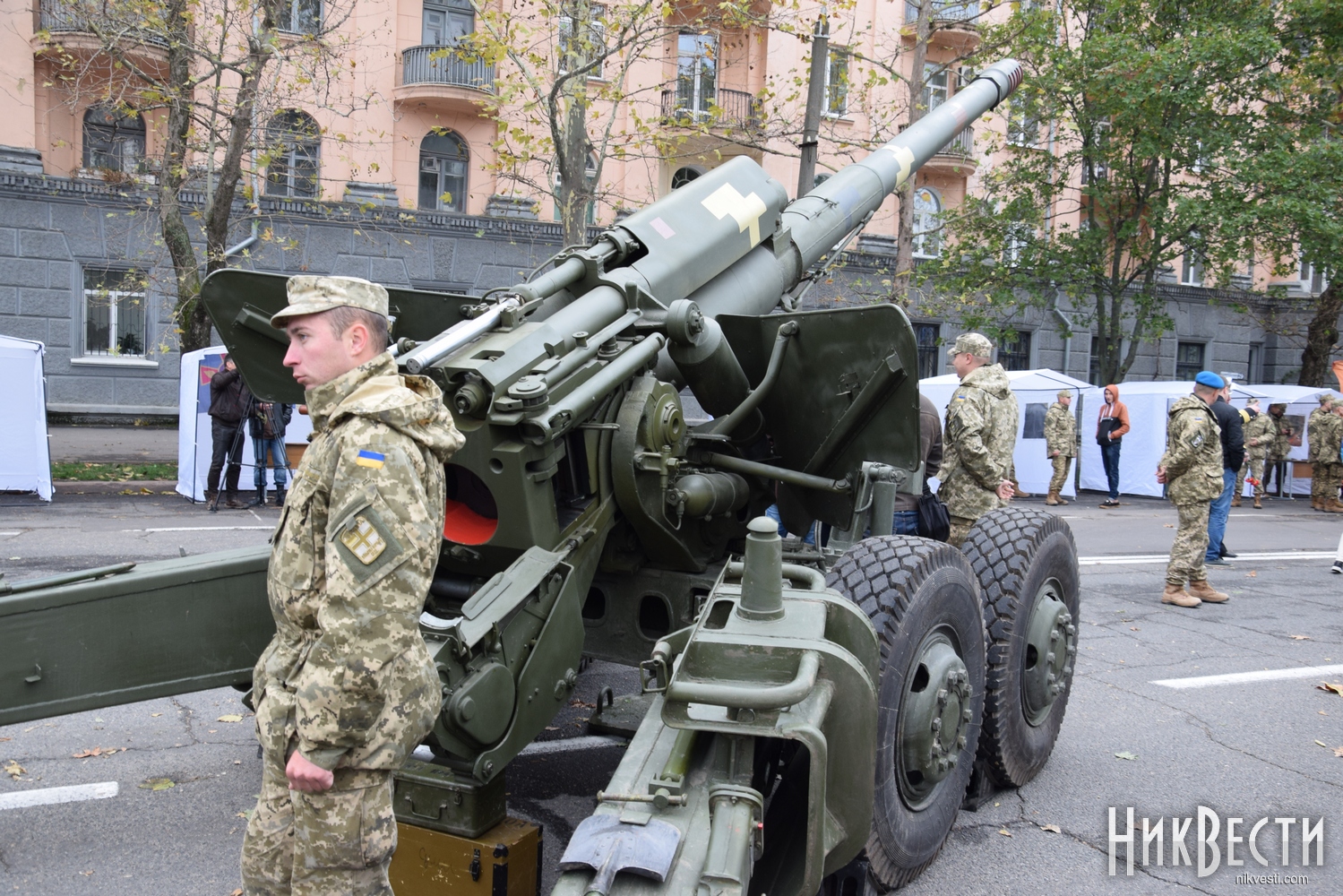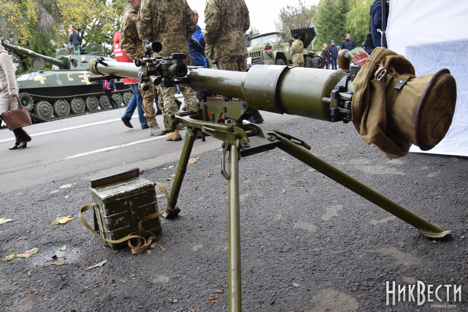 В частности, горожанам показали САУ 2С1 «Гвоздика», танк Т-80, БТР-80, 152-миллиметровую пушку-гаубицу Д-20, РСЗО БМ-21 «Град», пушку 2А36 «Гиацинт-Б», а также различные виды стрелкового и тяжелого оружия.