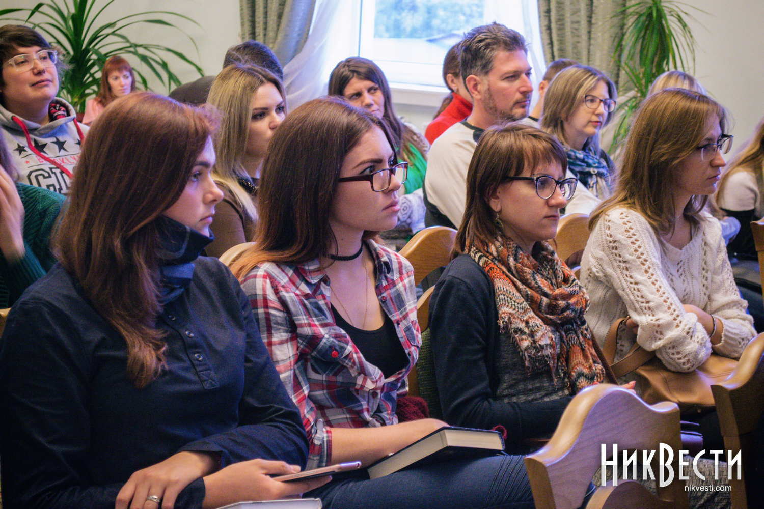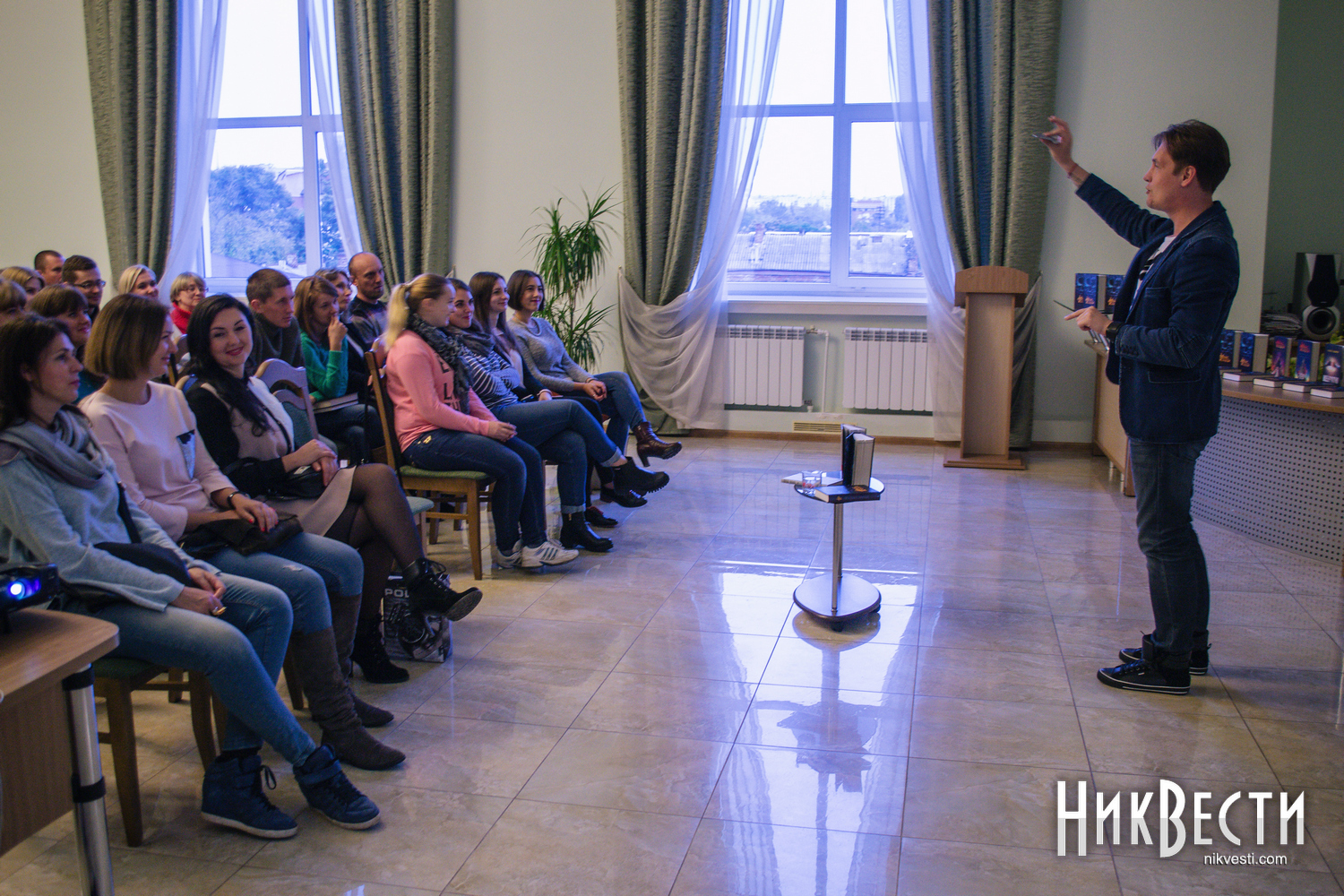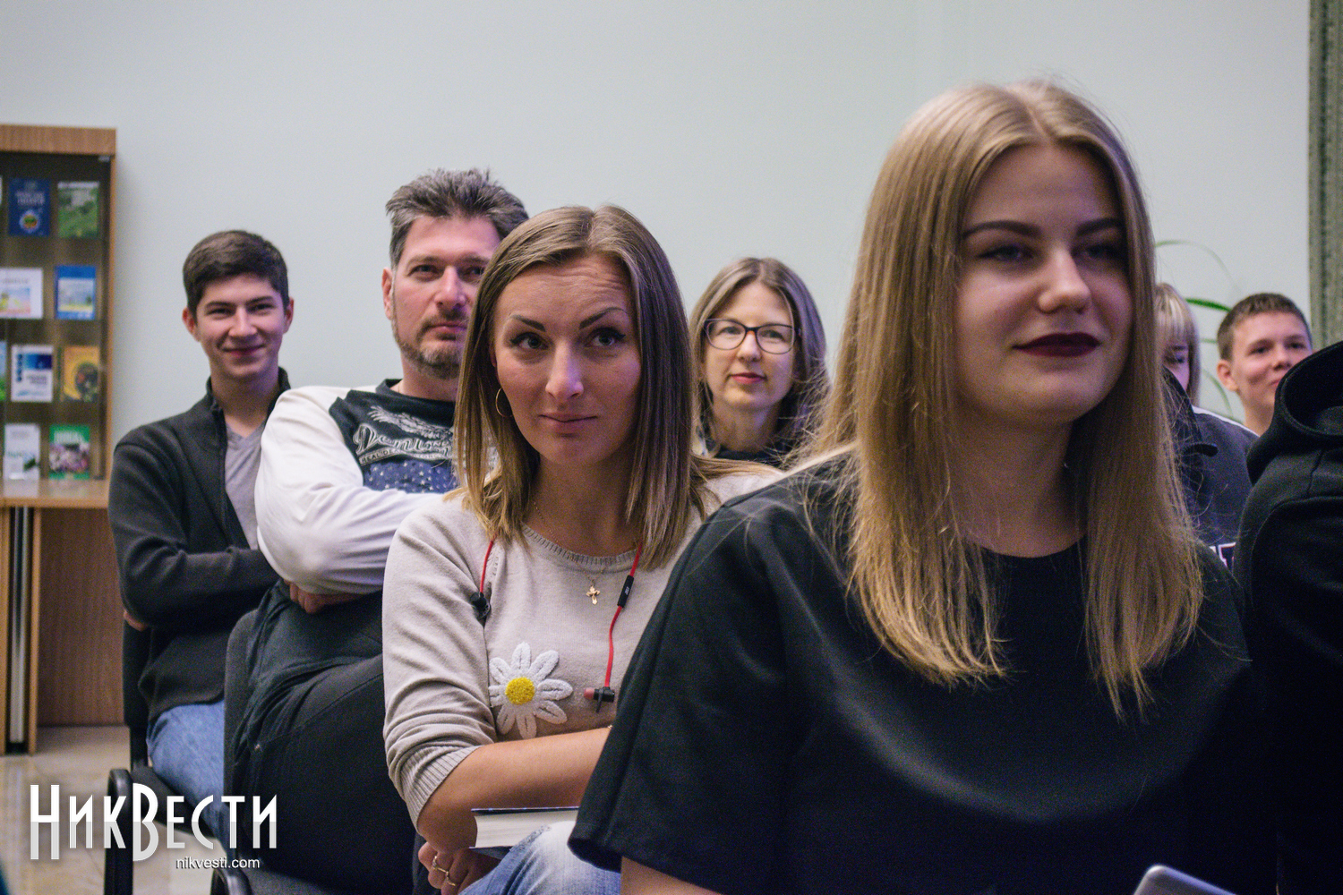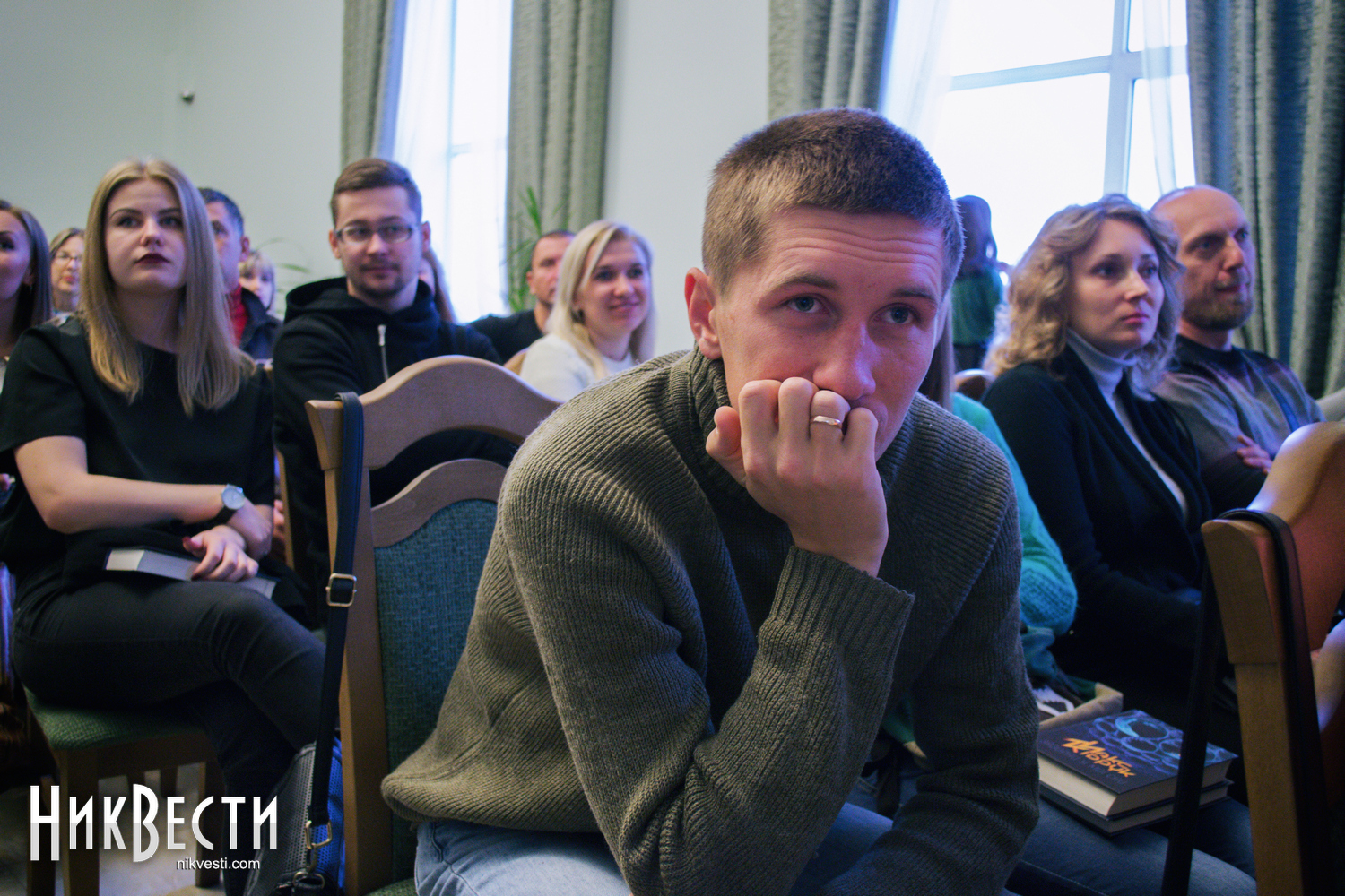 В Николаевской областной библиотеке имени Гмырева, где приходила презентация, собралась значительно более скромная по численности аудитория – всего порядка 50 человек. Переходя к общению со своими читателями, Макс Кидрук, как и всегда, постарался не просто рассказать о своей книге, а заинтересовать аудиторию идеями, которые его волнуют, и ощутить обратную отдачу. На этот раз писатель и читатели обсудили темы человеческой памяти, жизни и смерти.