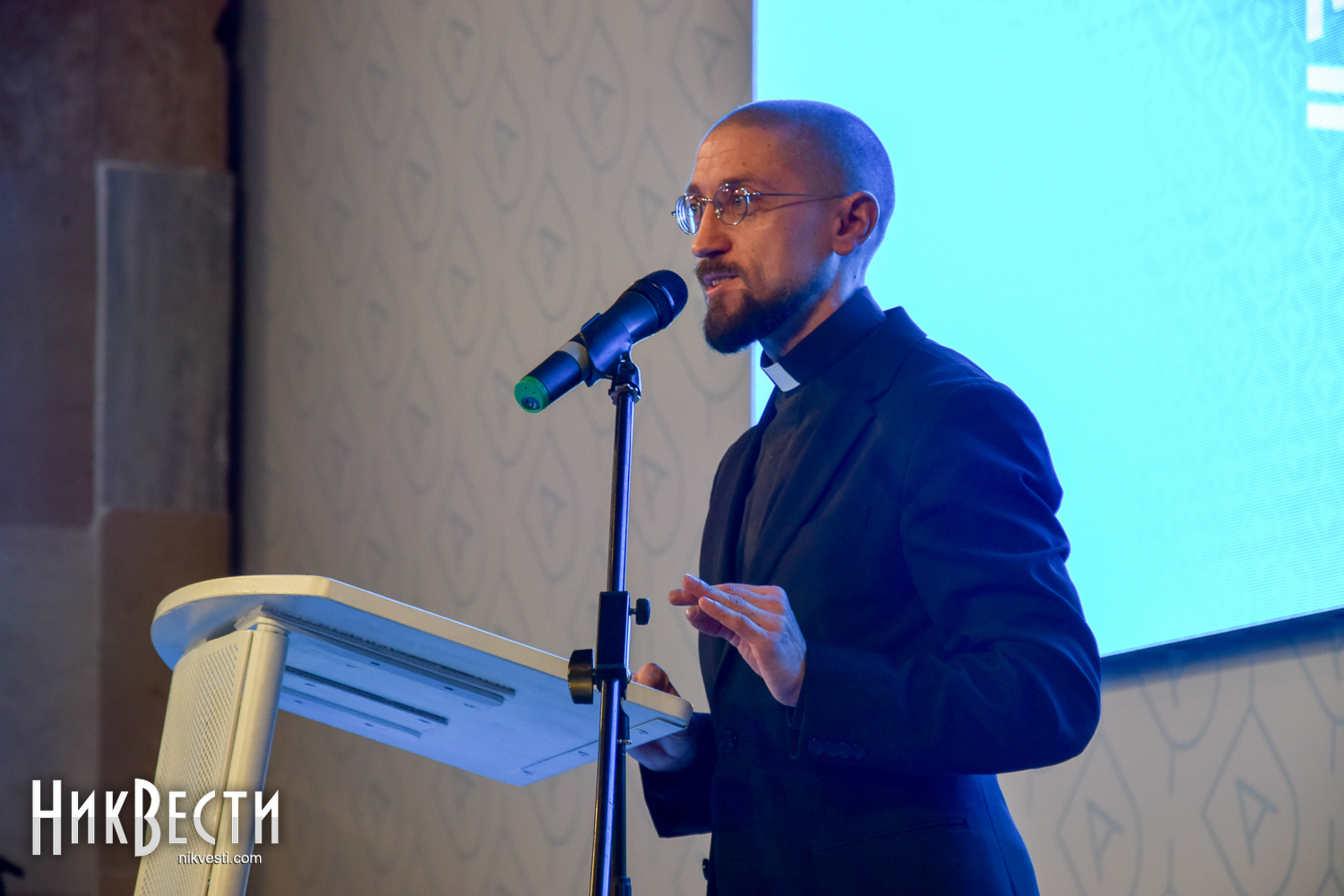 На открытии Академии лидерства в Николаеве присутствовали известный журналист Вахтанг Кипиани, который будет читать для студентов курс о национальной памяти, а также военный капеллан Украинской греко-католической церкви Андрей Зелинский и военнослужащие Вооруженных Сил Украины.