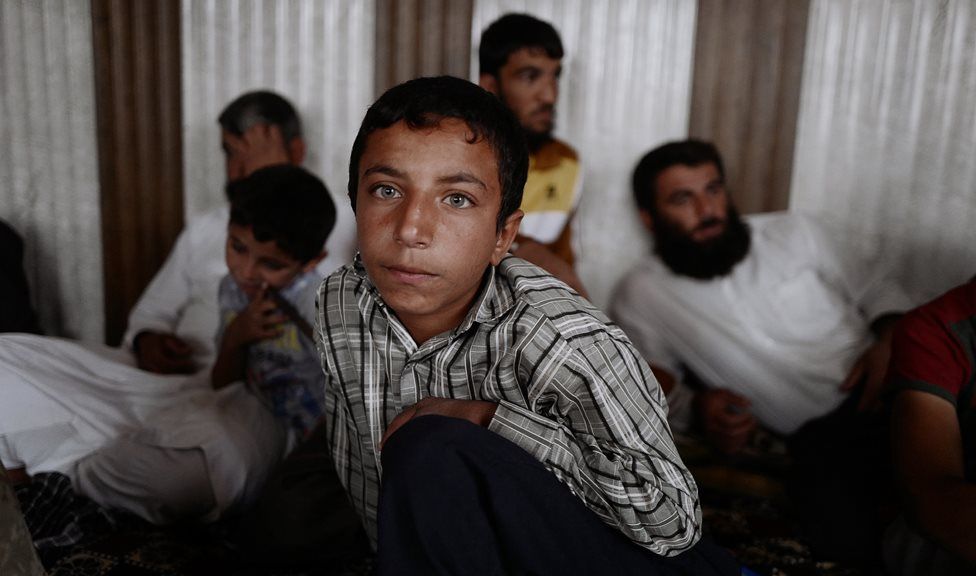 Мальчик со своей семьей в Кукджали. Во время наступления иракских войск на Мосул боевики ИГ запретили жителям покидать город и стреляли в тех, кто пытался бежать.