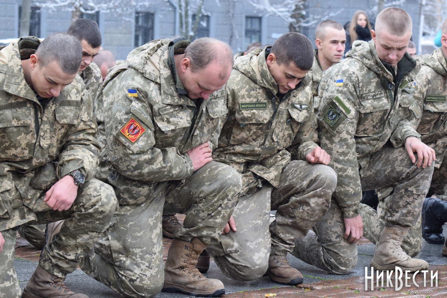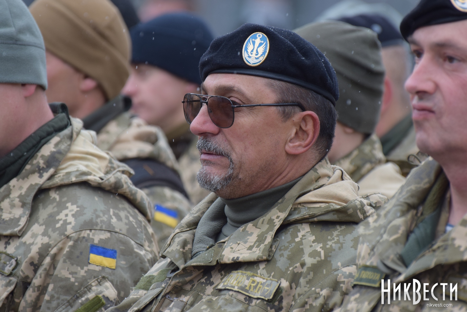 До этого в Николаеве 50 контрактников и 10 мобилизованных прошли специальное испытание, после которого их допустили к принятию клятвы морского пехотинца.