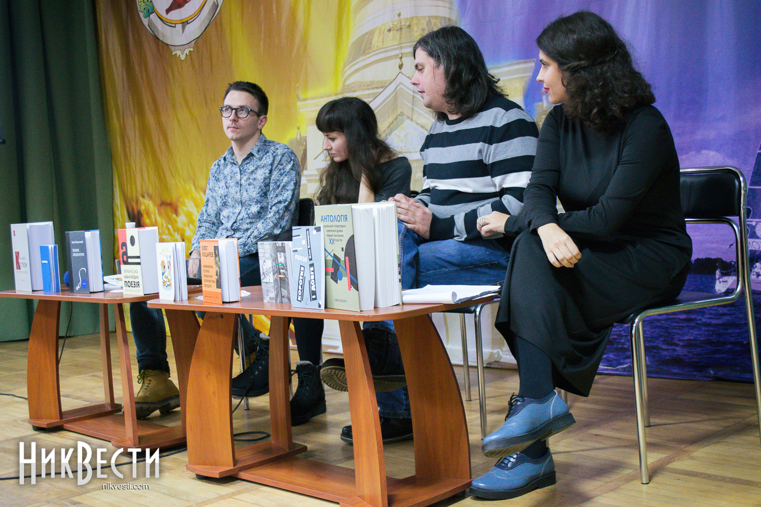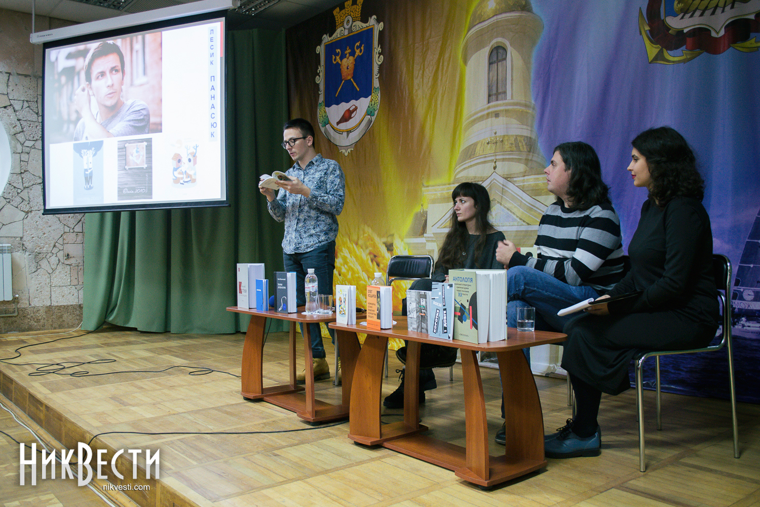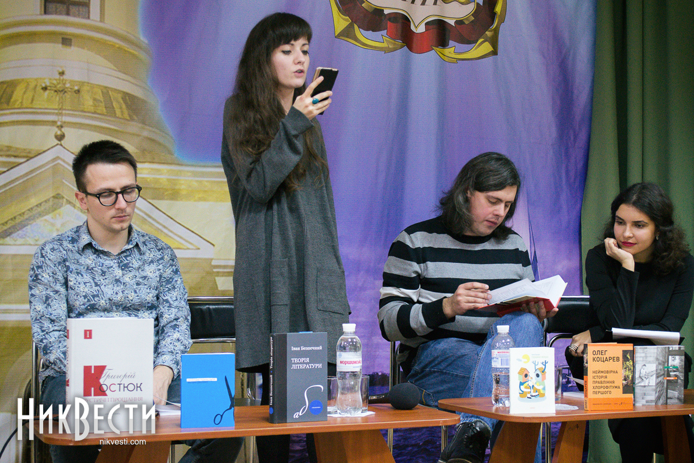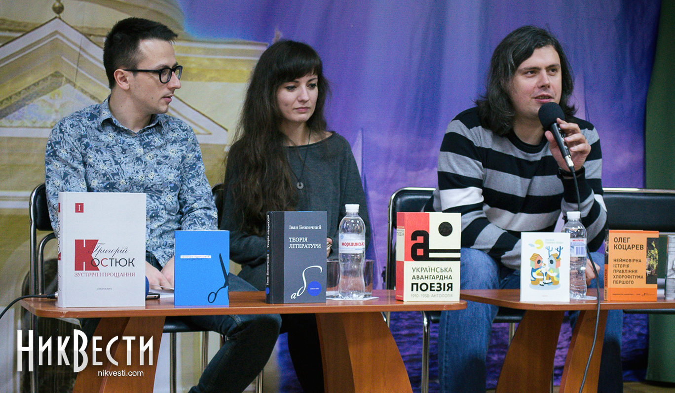 В отличие от довольно хорошо знакомого николаевским ценителям поэзии Лесика Панасюка, Олег Коцарев и Дарина Гладун выступали в Николаеве впервые. Девушка рассказала, что издательство «Смолоскип» готовит к выходу ее первый сборник стихов «Рубить дерево».