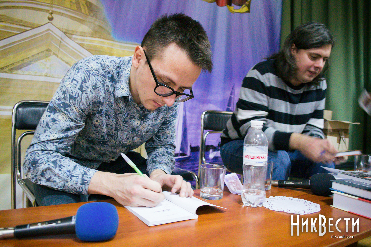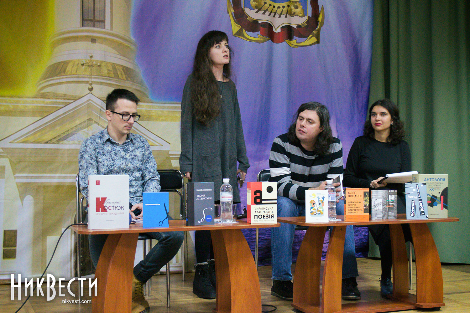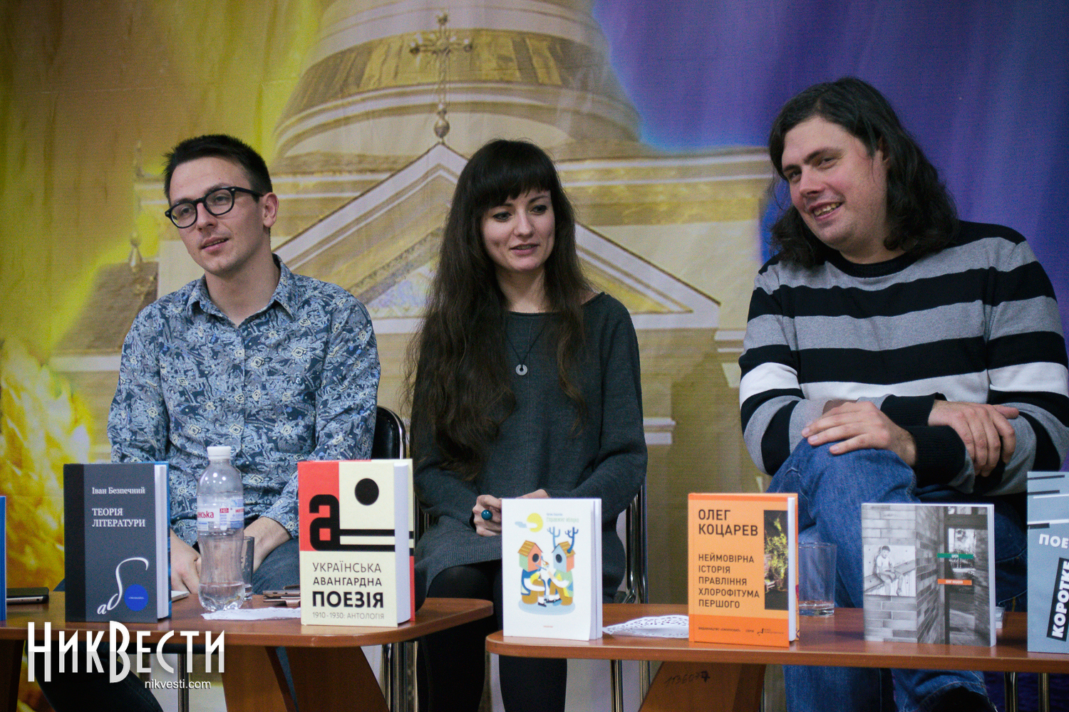 В отличие от довольно хорошо знакомого николаевским ценителям поэзии Лесика Панасюка, Олег Коцарев и Дарина Гладун выступали в Николаеве впервые. Девушка рассказала, что издательство «Смолоскип» готовит к выходу ее первый сборник стихов «Рубить дерево».