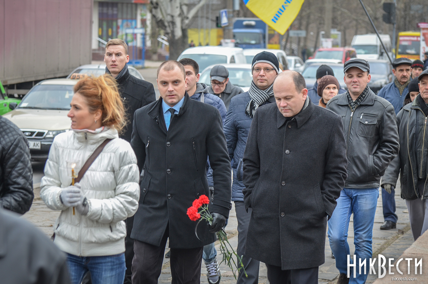 В субботу, 26 ноября, традиционно жители Николаева и области почтили память жертв Голодомора, геноцида украинского народа, траурным шествием и возложением цветов к памятному знаку жертв Голодомора.