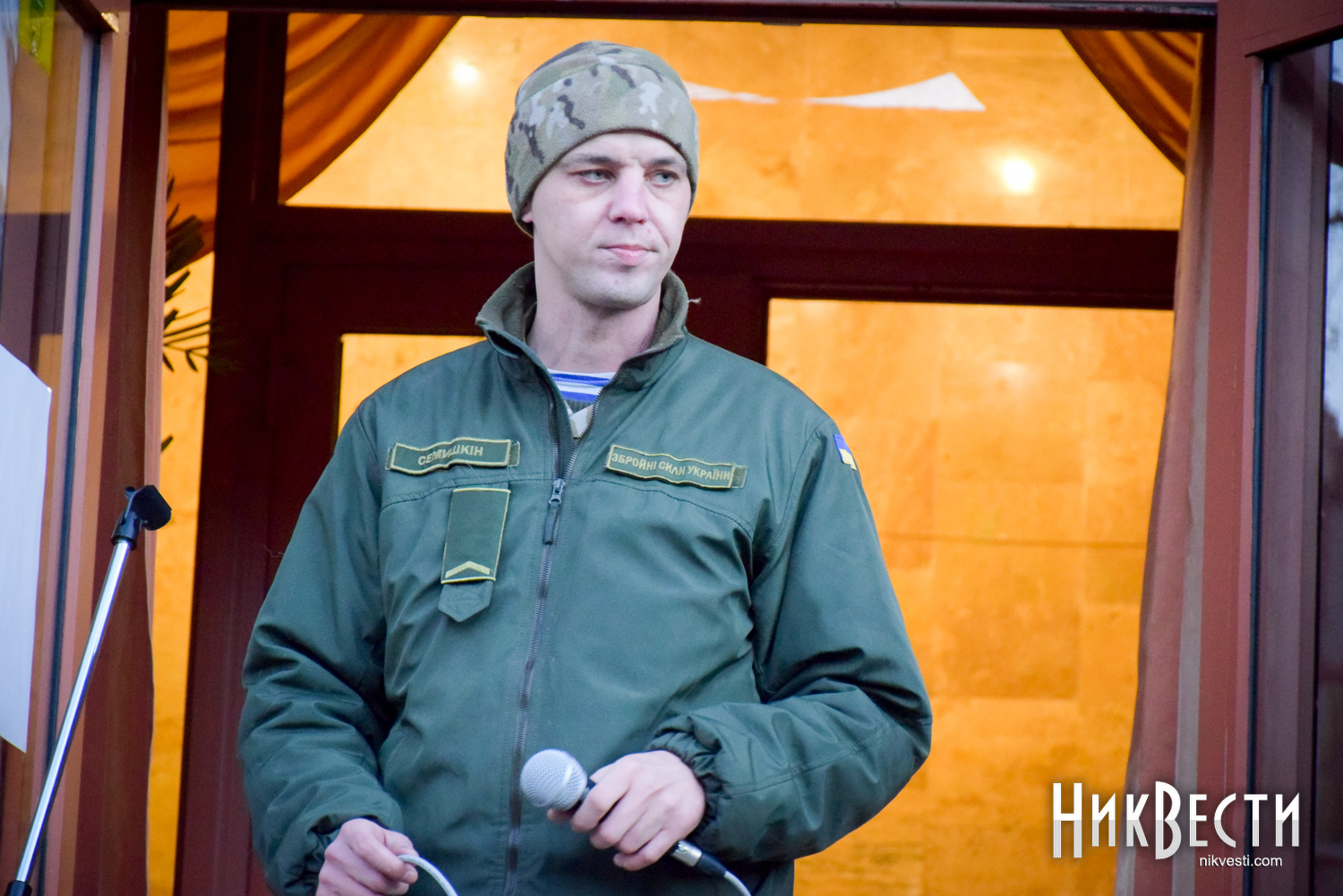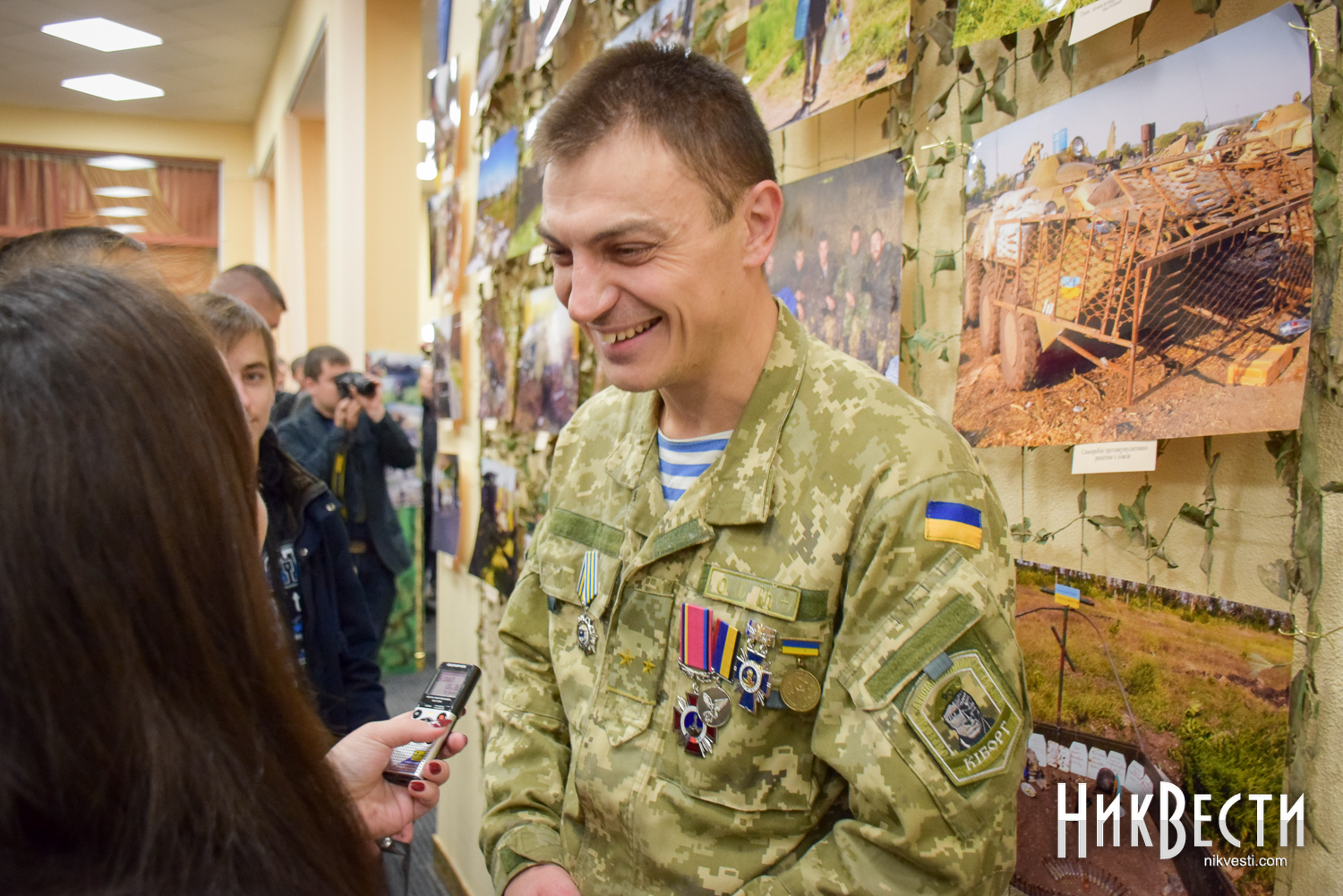 Сергей Веремеенко был активным защитником целостности Украины в начале 2014 года, когда Россия пыталась реализовать в Николаеве план под названием «Русская весна». Последние два года он провел на фронте. На открытие выставки «Наши» примчался из одной из самых горячих точек – Авдеевки.