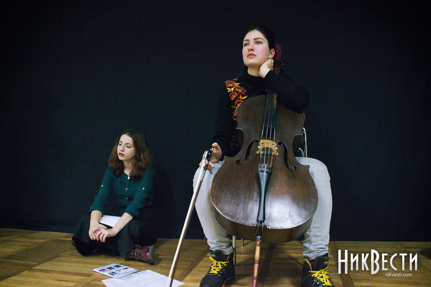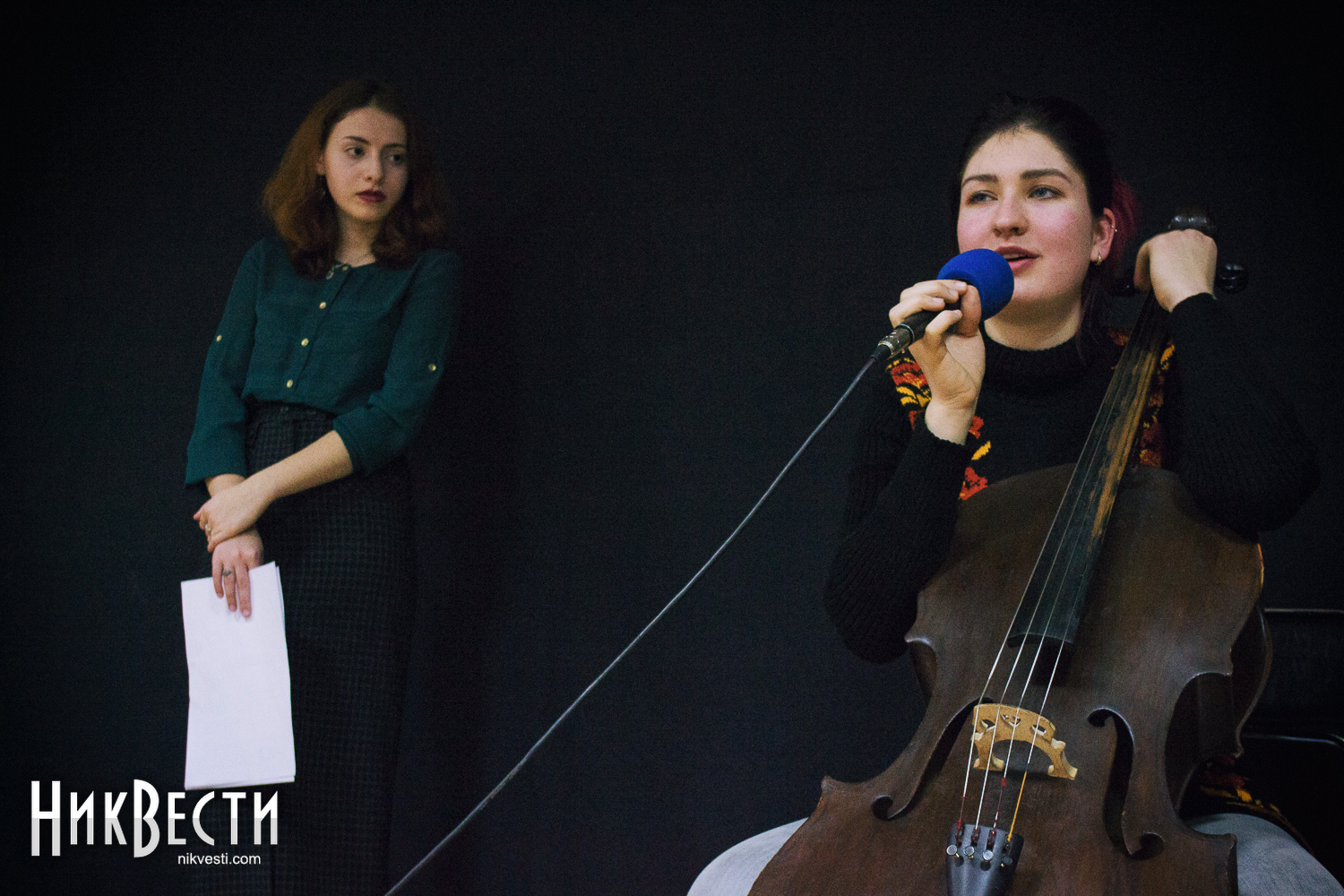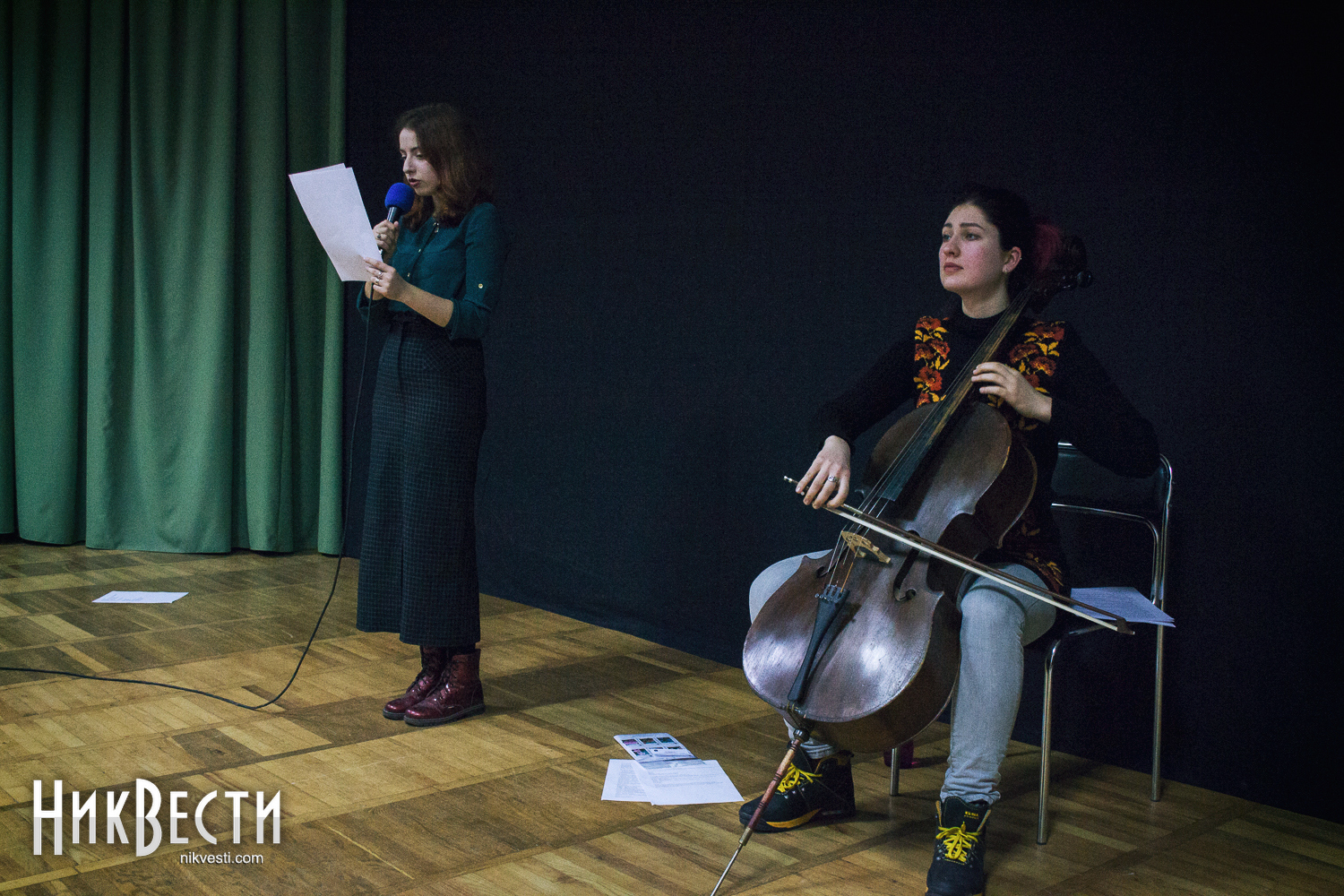 В Николаев Театр ушей приехал в таком составе: Ирина Фингерова – прозаик, журналист, создатель театра, Влада Ильинская – поэт, София Вишневская – поэзия, виолончель и Тимур Белкин – глюкофон, гитара.