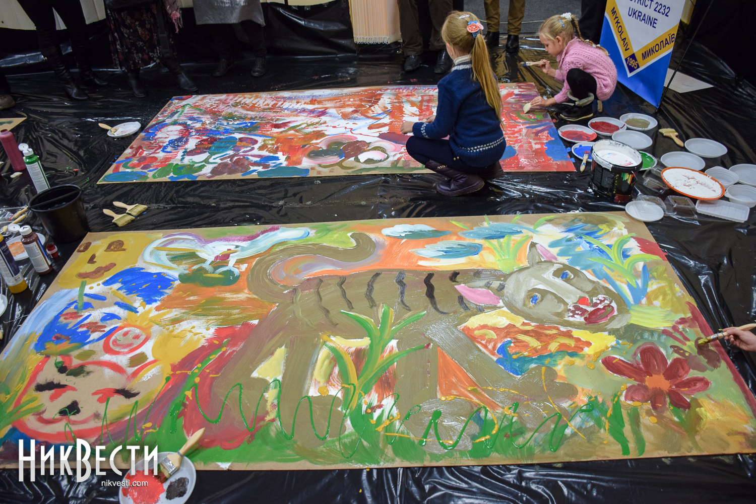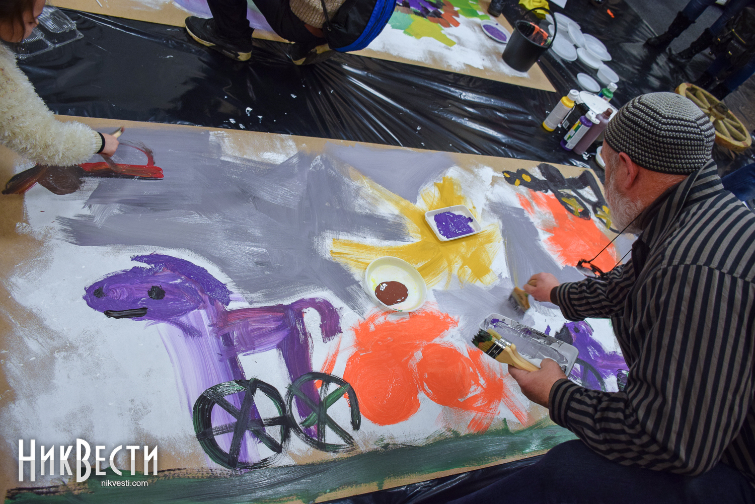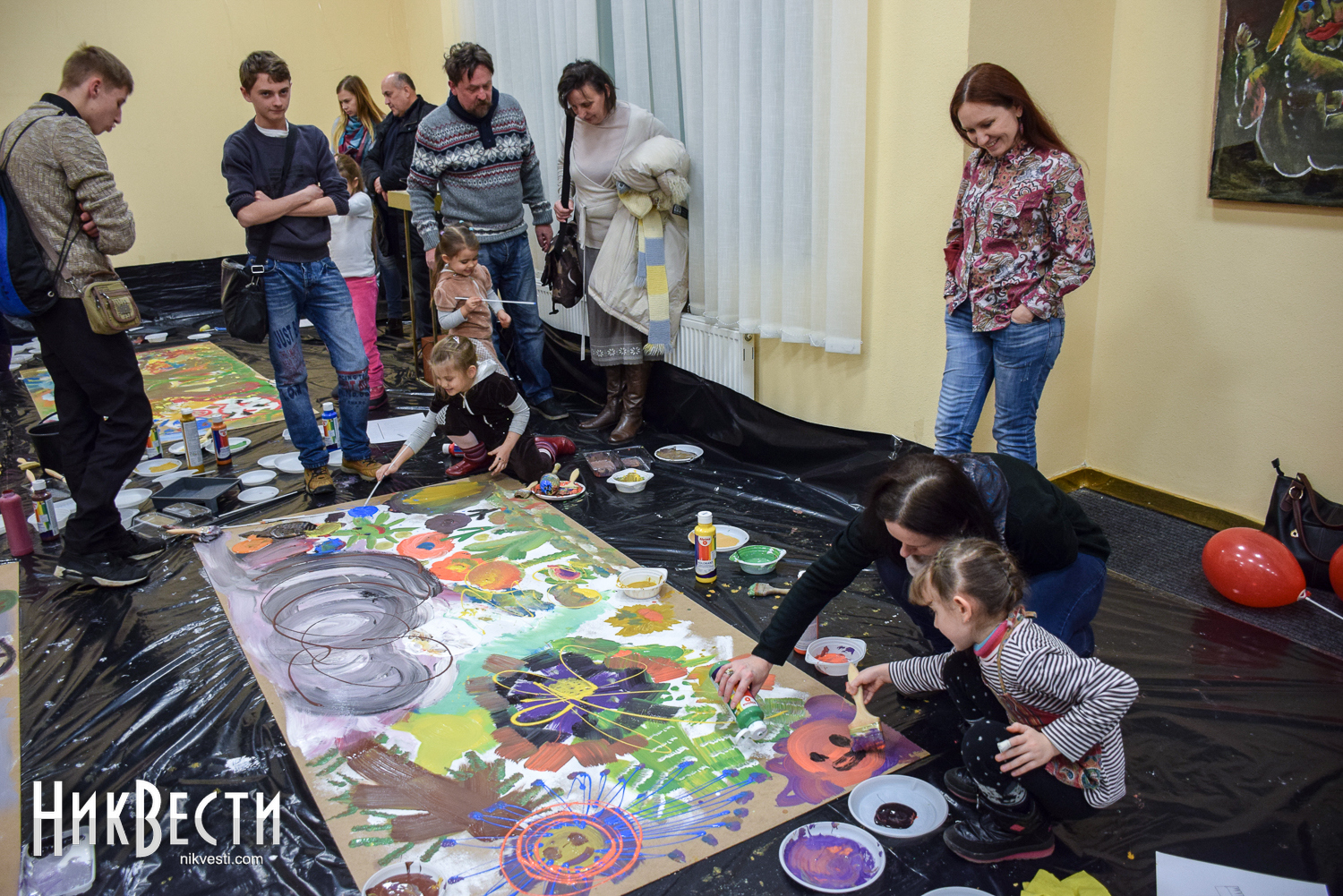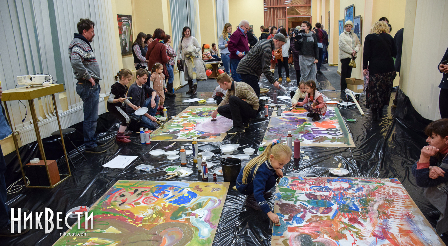 Именитые николаевские художники и дети вместе нарисовали серию картин для благотворительной выставки