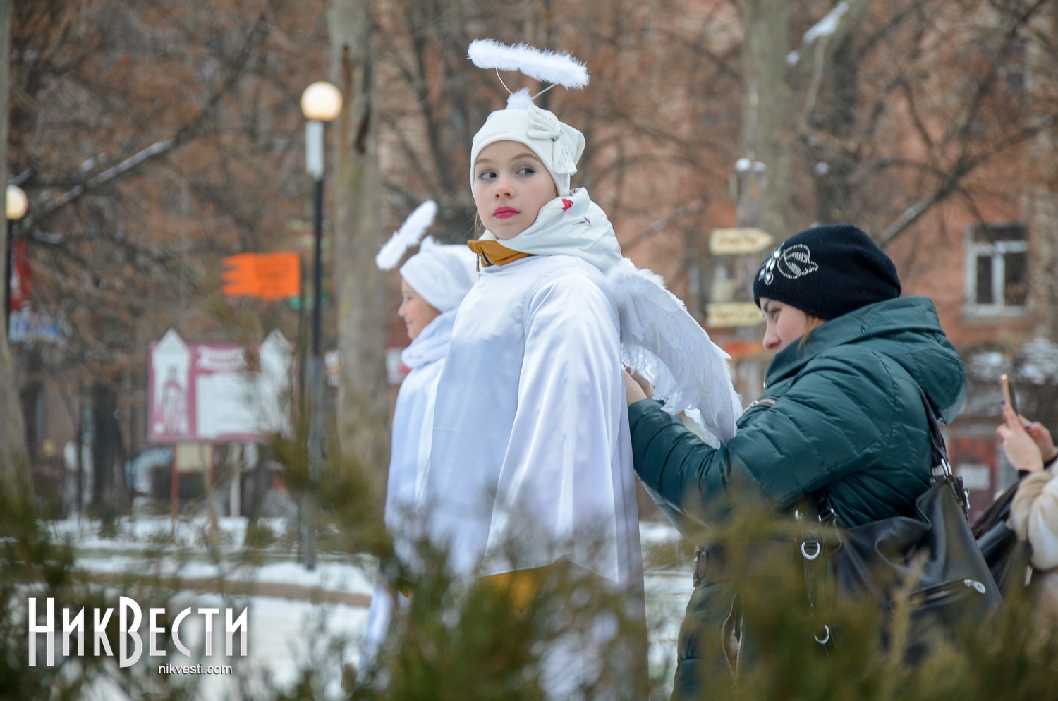 Примерно в 14:00 появился Святой Николай, его ангелы и сказочные персонажи. Когда концерт завершился, взрослые и дети выстроились в колонну и под бодрые мелодии оркестра двинулись из «Сказки» по Соборной улице. Попутно они приветствовали горожан, пели новогодние песни и улыбались фотографам.