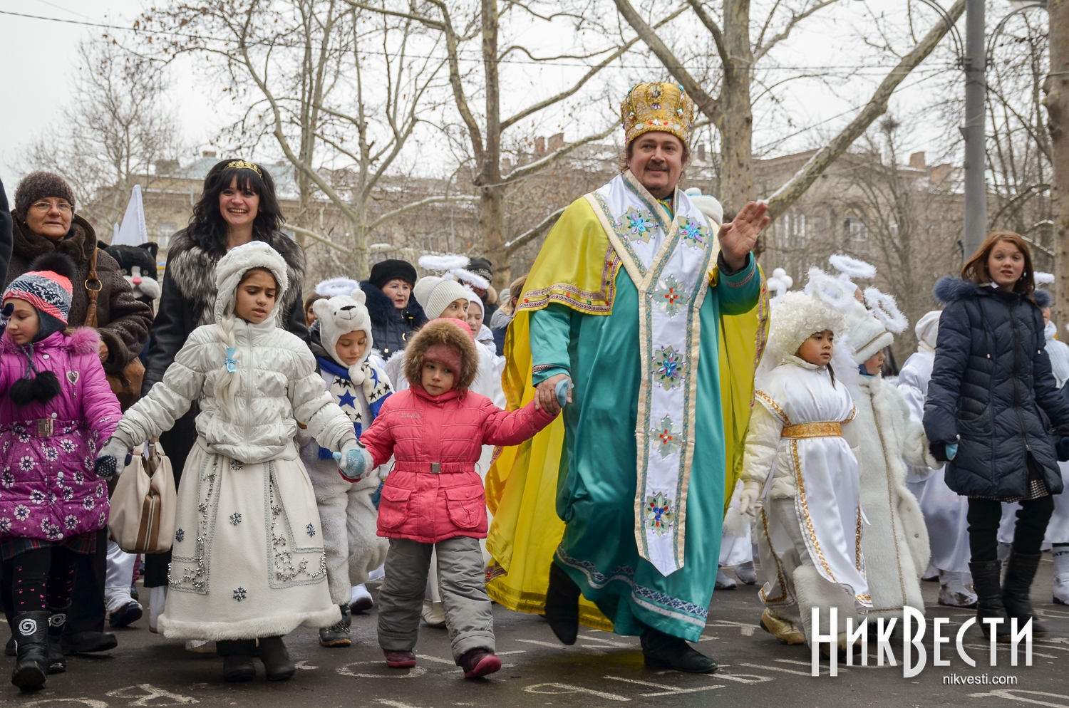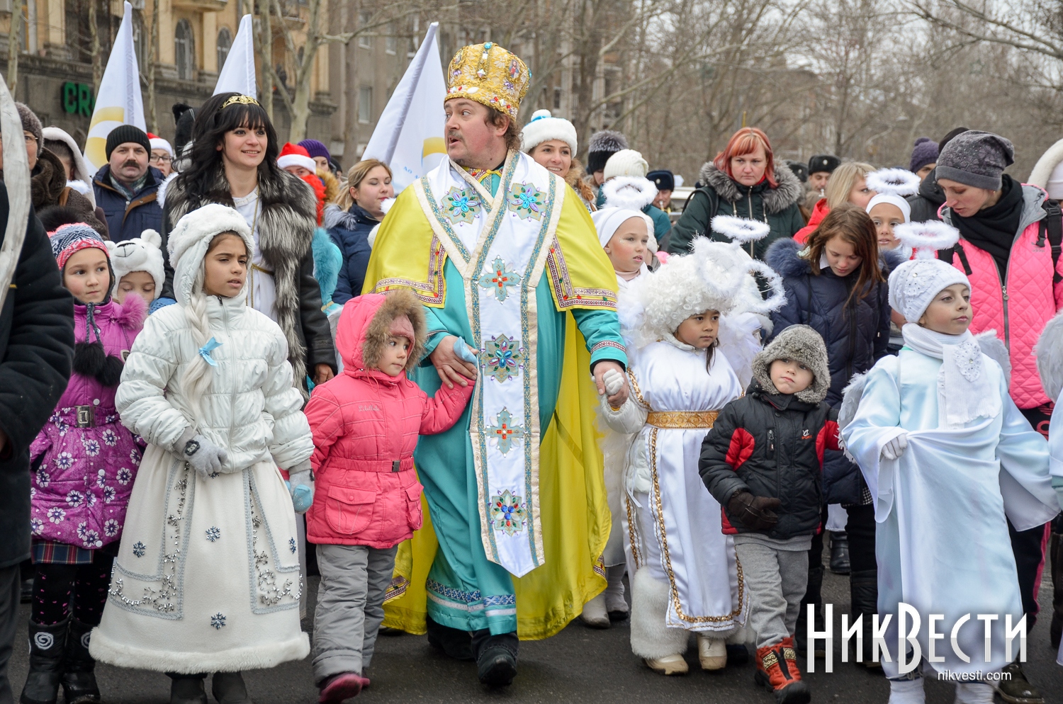 Сегодня, 19 декабря, несколько сотен николаевцев присоединились к карнавальному шествию к главной елке города на Соборной площади по случаю Дня Святого Николая.