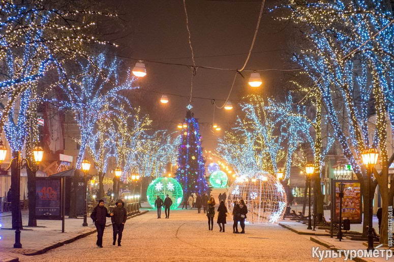 Главная улица Одессы Дерибасовская преобразилась в канун Нового года