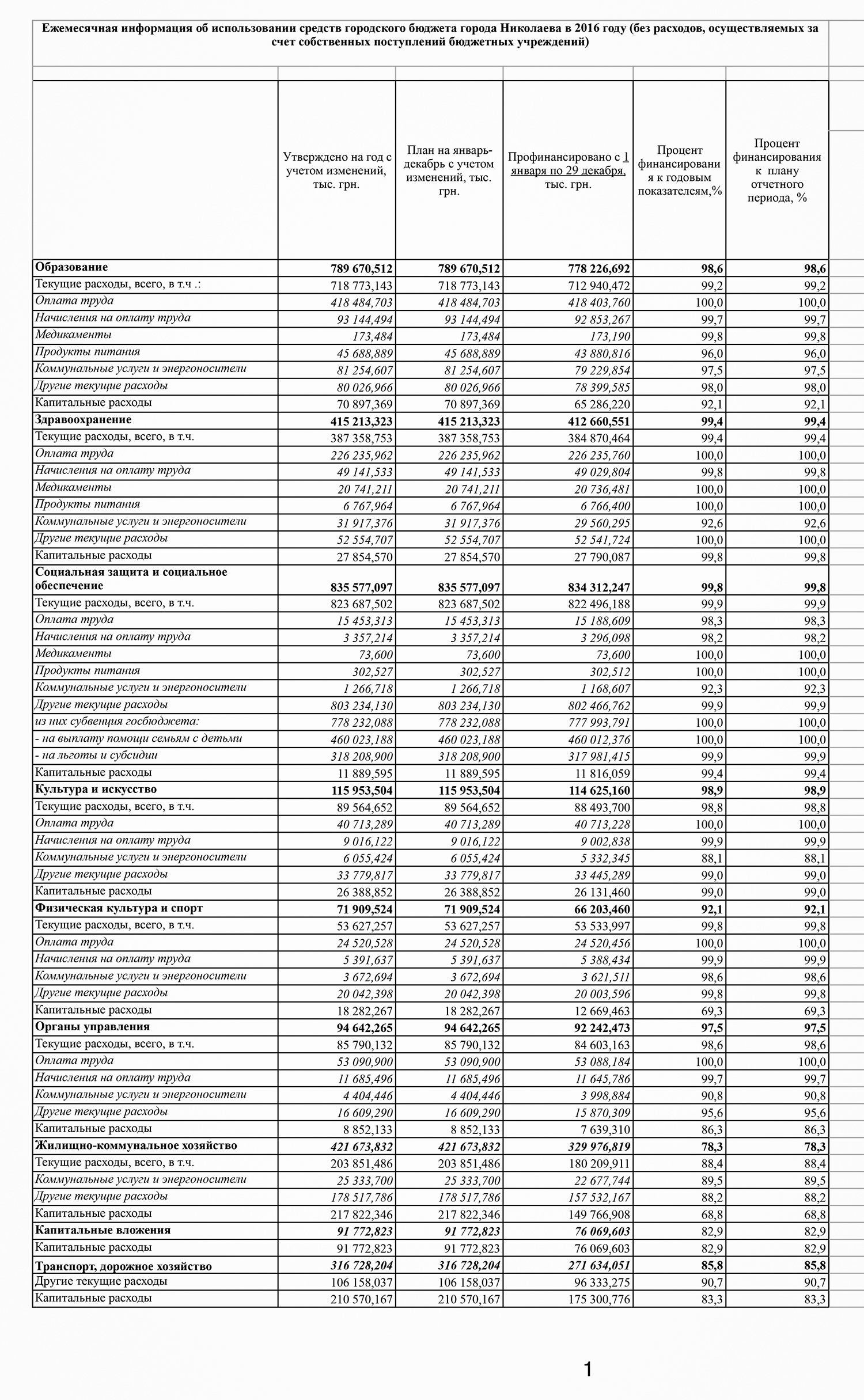 Актуальную информацию об использовании бюджетных средств состоянием на 29 декабря 2016 года НикВестям передал Департамент финансов Николаевского городского совета.