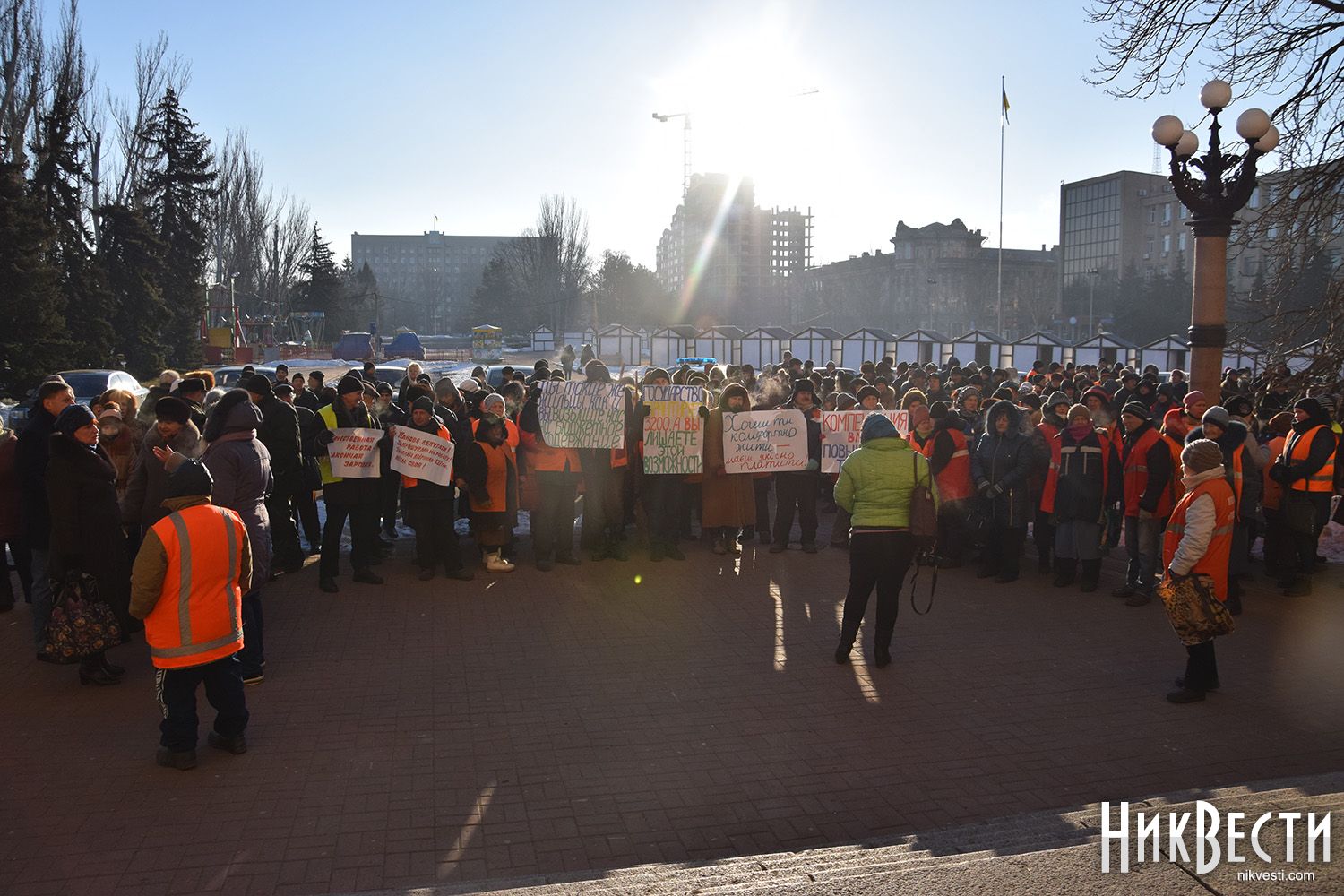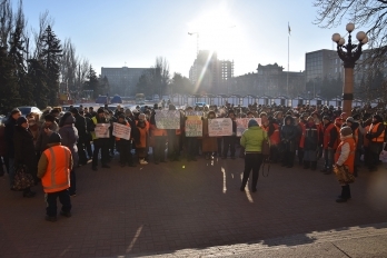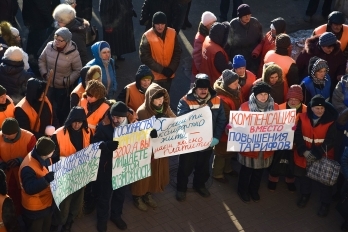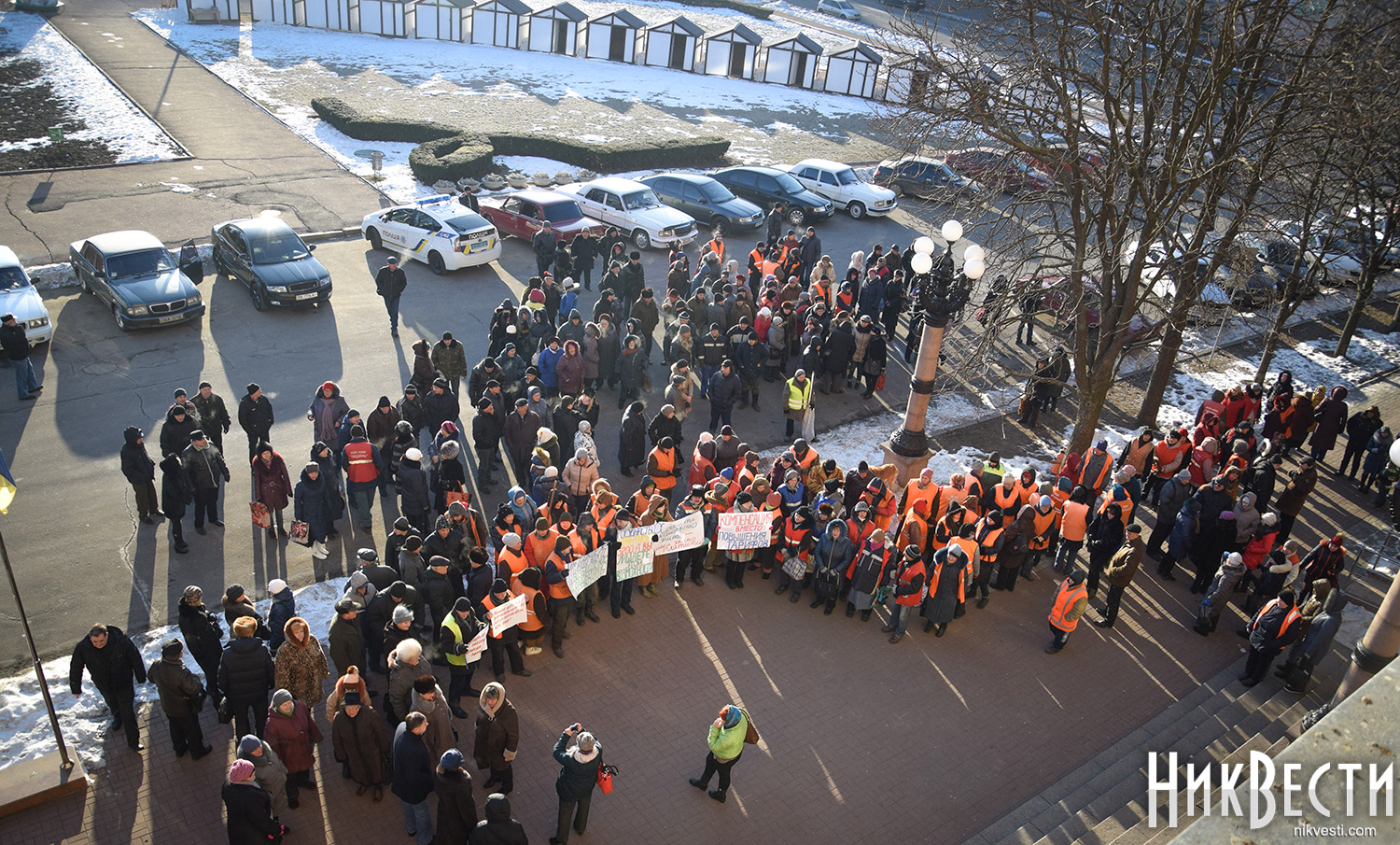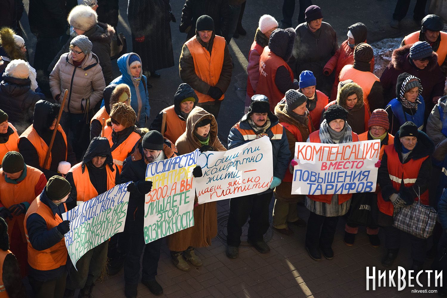 Сотрудники коммунальных и частных жилищно-эксплуатационных контор вышли на митинг под здание Николаевского городского совета в поддержку решения исполкома о поднятии подомового тарифа.