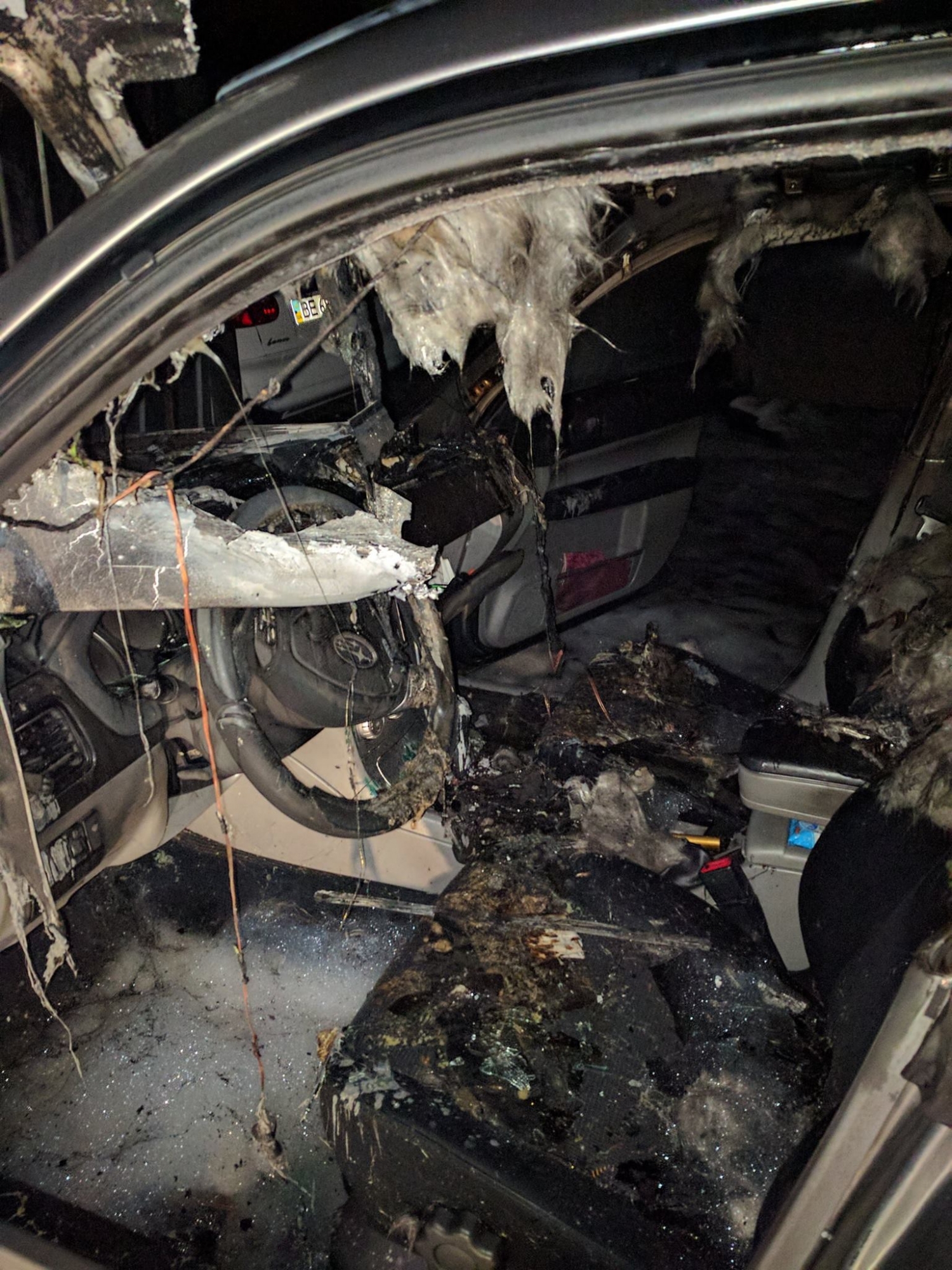 Никита Скворцов сообщил, что в пятницу вечером, 17 февраля, на стоянке сожгли автомобиль его отца.