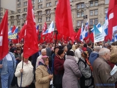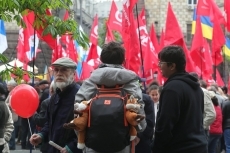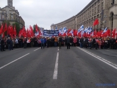 В марше-акции, посвященной Международному дню трудящихся, на Европейской площади принимают участие несколько тысяч человек.