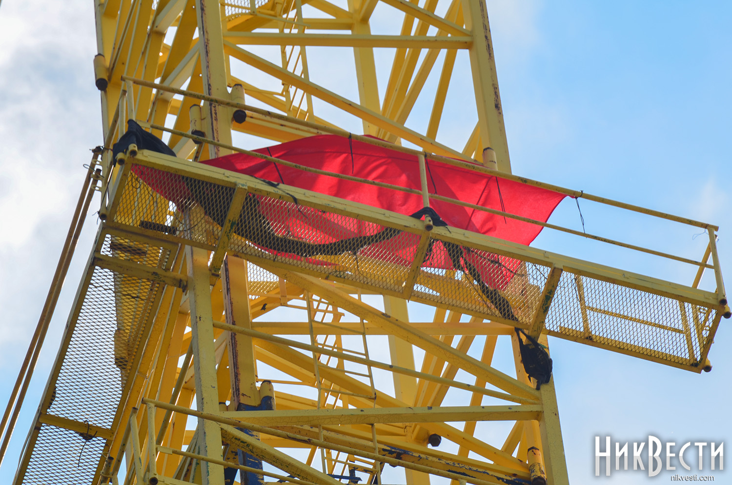 Напомним, что красно-черный флаг над недостроем был вывешен по инициативе председателя Николаевской облгосадминистрации Алексея Савченко и руководителя депутатской группы «Разом до перемоги» в областном совете, представителя «Нашего края» Юрия Кормышкина. 27 апреля губернатор и депутат продемонстрировали общественности вывешенный флаг и сообщили, что он был вывешен в рамках празднования Дня добровольцев.