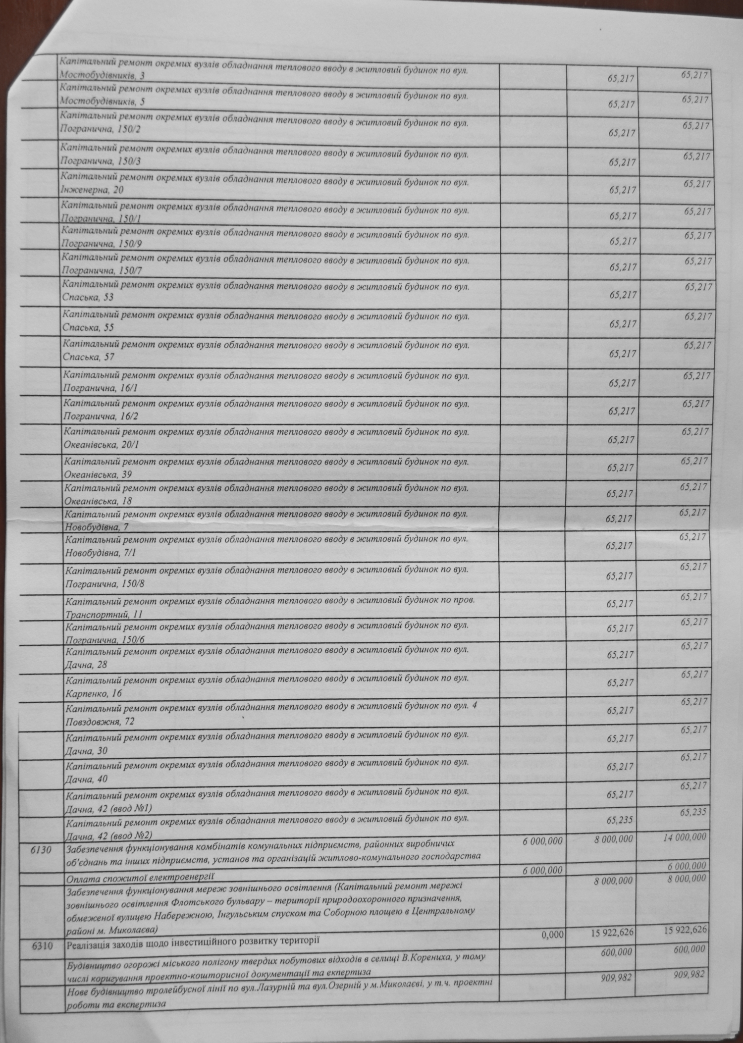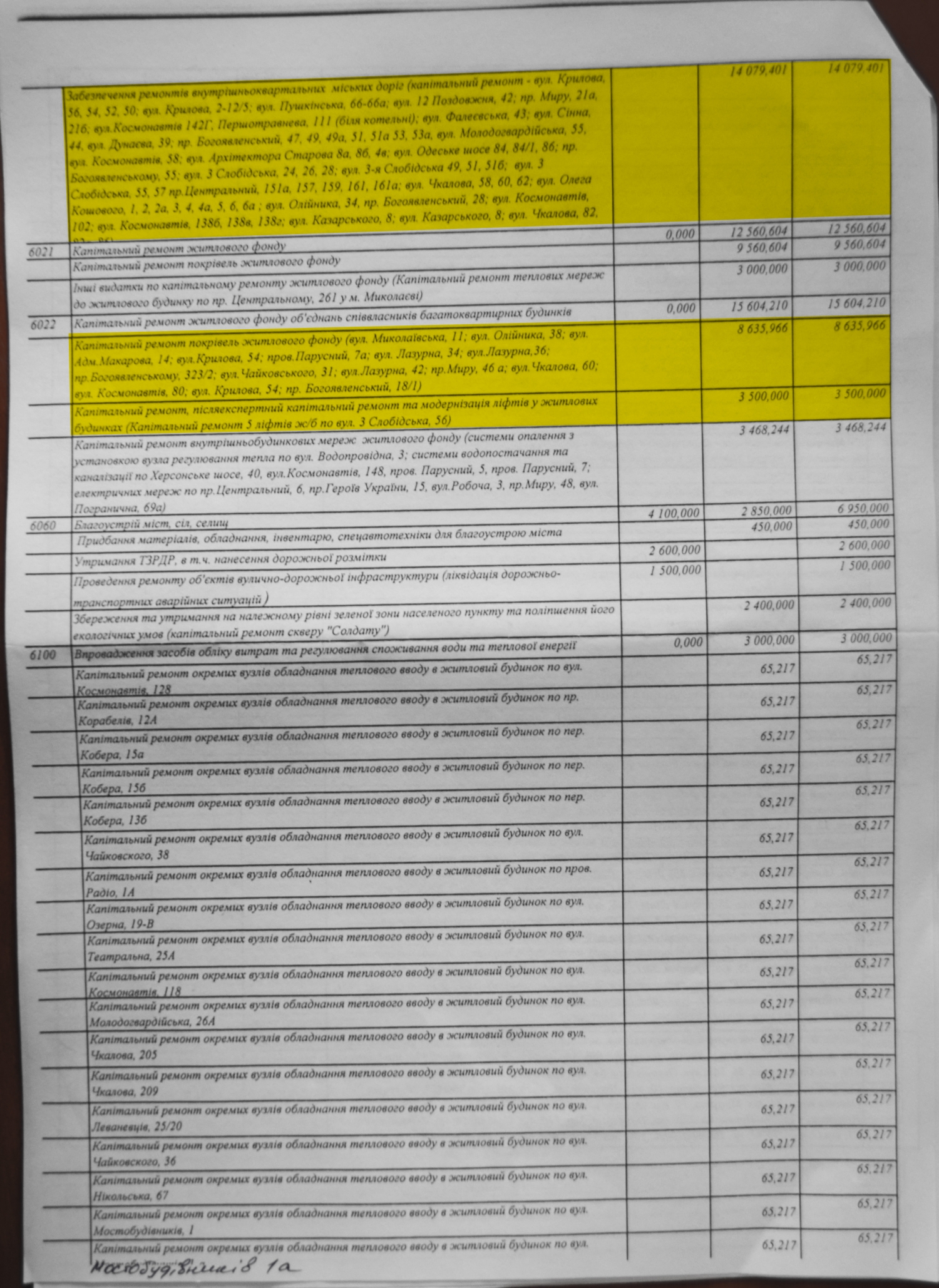 Также часто встречаются объекты на избирательном округе секретаря горсовета Татьяны Казаковой. К примеру, 3,5 миллионов гривен предусмотрено для капитального ремонта 5 лифтов в жилом доме по улице 3 Слободской, 56, который входит в территориальные границы ее округа.