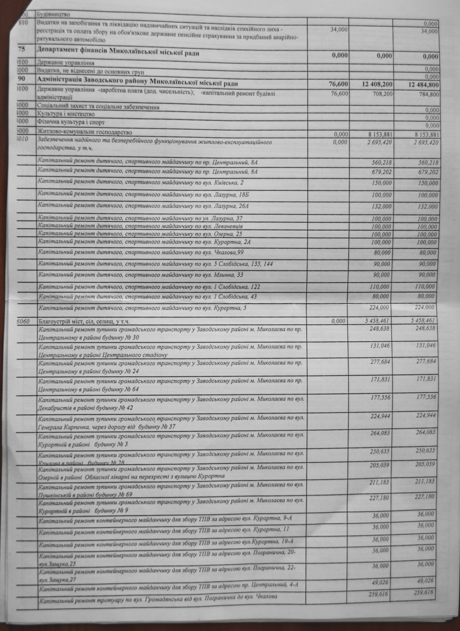 Также стоит отметить округ депутата от «Оппозиционного блока» Сергея Жайворонка, объекты на территории которого также часто встречаются в росписи расходов. Мэр Николаева Александр Сенкевич, баллотируясь в городской совет по спискам «Самопомощи», был также закреплен за данным округом. На территории избирательного округа планируется: отремонтировать кровлю жилого дома по улицам Чайковского, 31, отремонтировать внутриквартальные проезды по проспекту Богоявленскому 47, 49, 49А, 51, 51А, 53, 53А, 55, улице Молодогвардейской, 55, улице Космонавтов, 58.