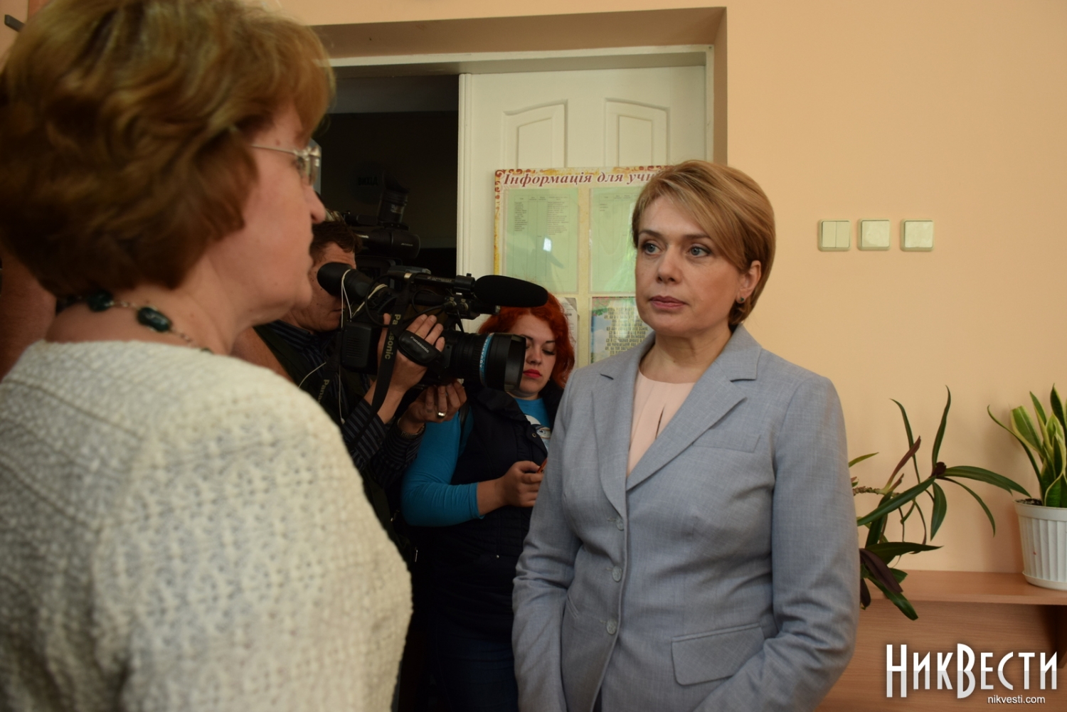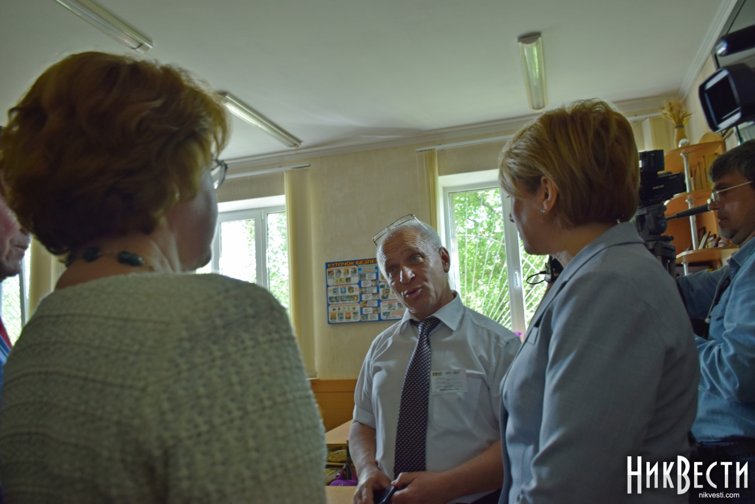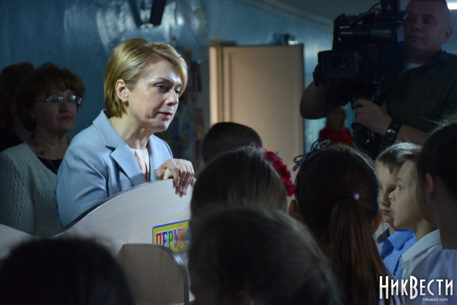 Вместе с ней в школу пришли заместитель председателя Николаевской облгосадминистрации Виталий Киндратив, николаевский городской голова Александр Сенкевич с заместителем – Евгением Шевченко, начальник управления образования Николаевского горисполкома Анна Деркач и директор Николаевского областного института последипломного педагогического образования Юрий Шуляр, - передает корреспондент НикВестей.