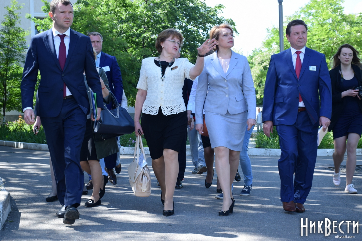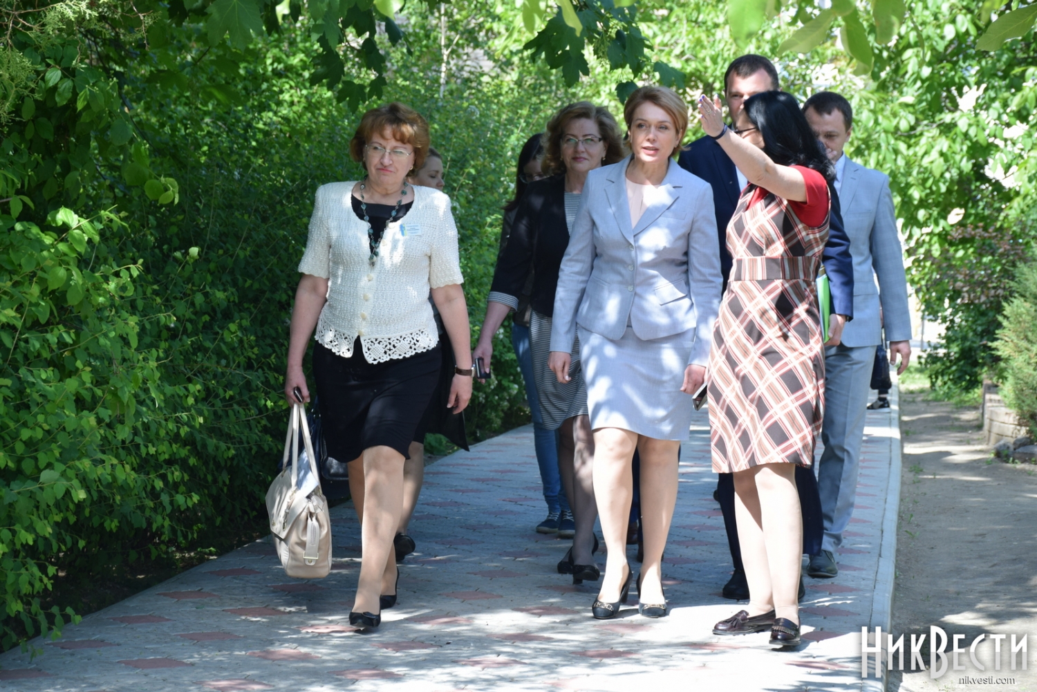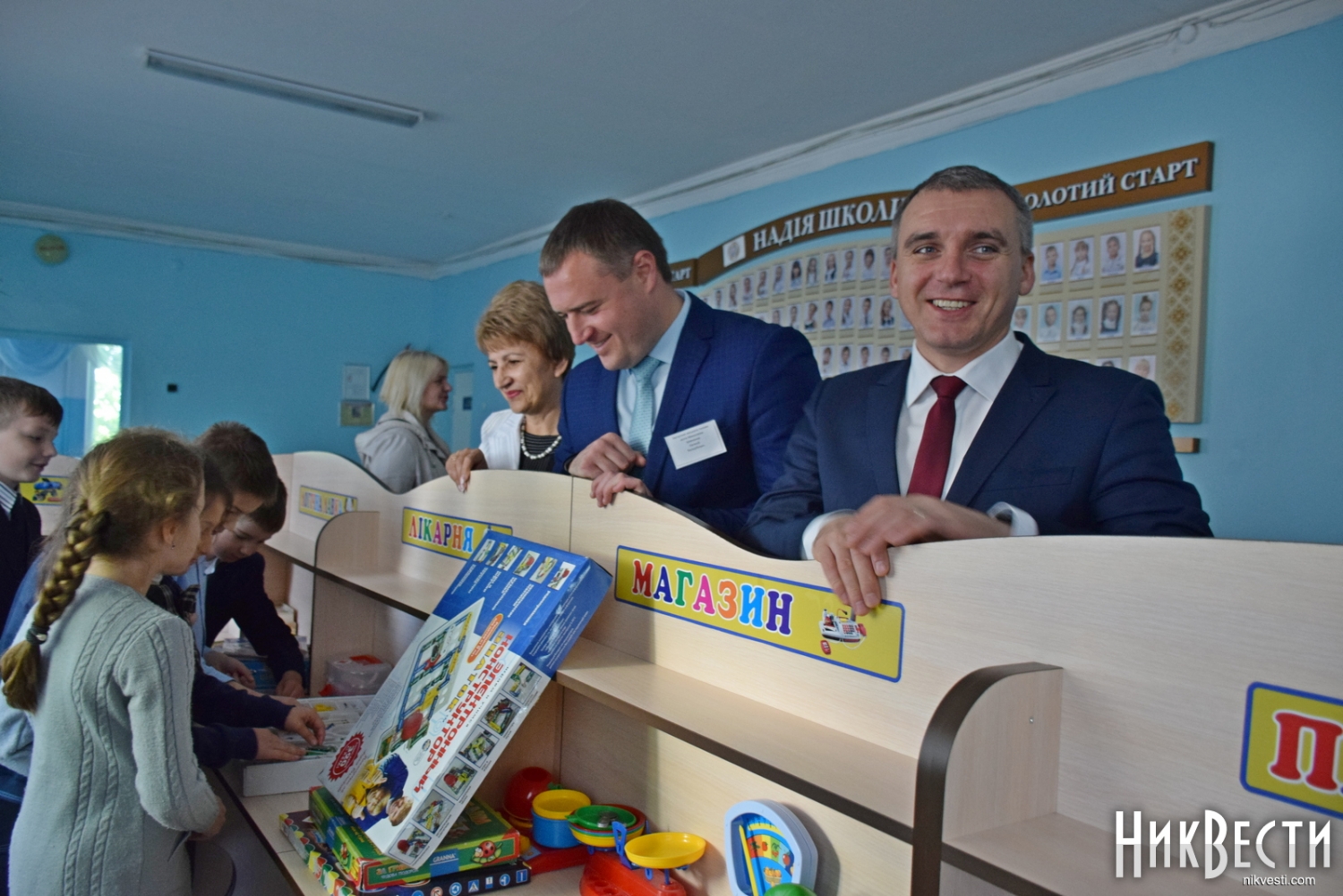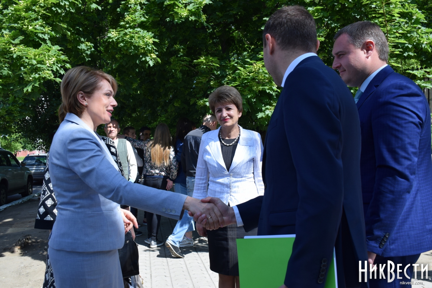 Вместе с ней в школу пришли заместитель председателя Николаевской облгосадминистрации Виталий Киндратив, николаевский городской голова Александр Сенкевич с заместителем – Евгением Шевченко, начальник управления образования Николаевского горисполкома Анна Деркач и директор Николаевского областного института последипломного педагогического образования Юрий Шуляр, - передает корреспондент НикВестей.