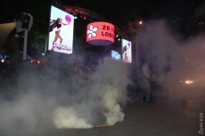 На акции бросали петарды и дымовые шашки. Полиция, которая охраняла порядок, с применением силы задержала нескольких человек для досмотра, но вскоре их отпустила. Полиция составила всего один протокол по 173 статье Кодекса об административных нарушениях – «мелкое хулиганство».