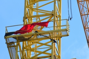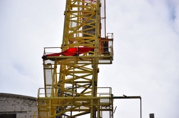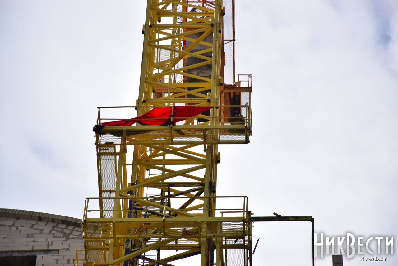 Красно-черный флаг националистов больше не висит на строительном кране около недостроенного здания жилого комплекса «Адмирал» напротив здания Николаевского областного совета на улице Адмиральской.
