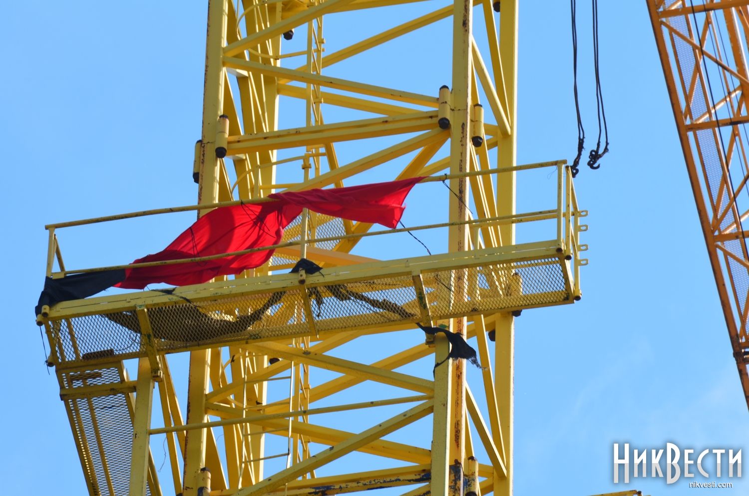 Напомним, что красно-черный флаг над недостроем был вывешен по инициативе председателя Николаевской облгосадминистрации Алексея Савченко и руководителя депутатской группы «Разом до перемоги» в областном совете, представителя «Нашего края» Юрия Кормышкина. 27 апреля губернатор и депутат продемонстрировали общественности вывешенный флаг и сообщили, что он был вывешен в рамках празднования Дня добровольцев.
