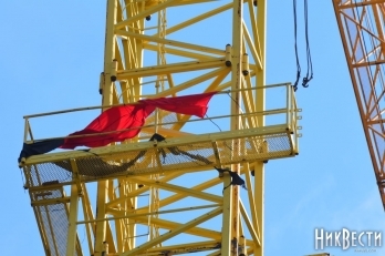 Сегодня, 3 июня, стало известно, что со строительного крана исчез красно-черный флаг, вывешенный ко Дню добровольцем при участии Алексея Савченко и Юрия Кормышкина. До этого он долгое время висел в разорванном состоянии.