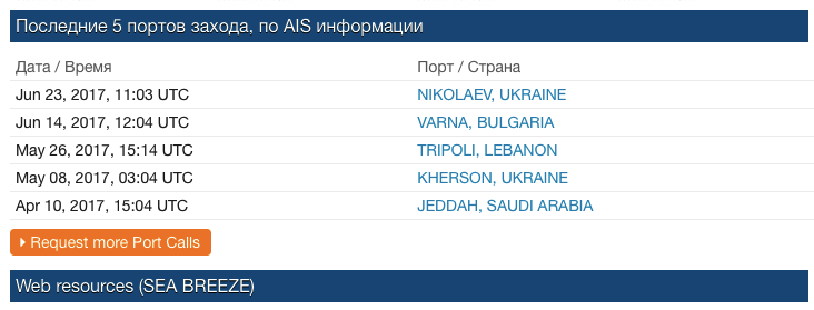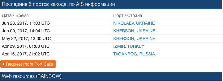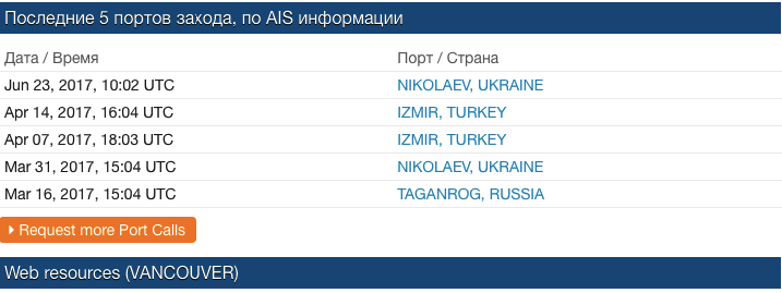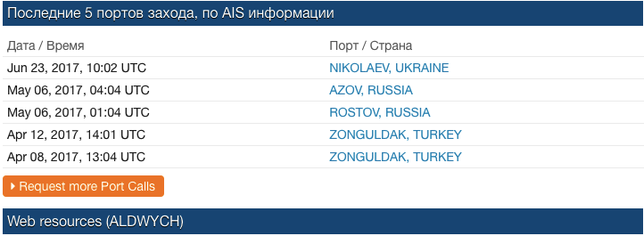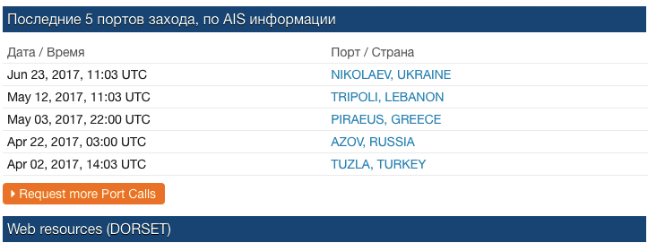 Судно пришло в Николаев из Турции, до этого было замечено в Таганроге, Россия.