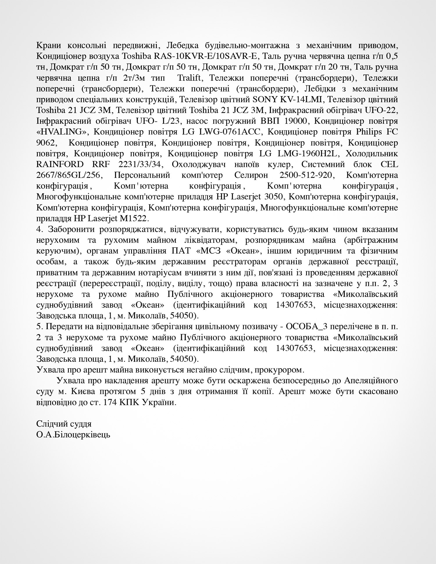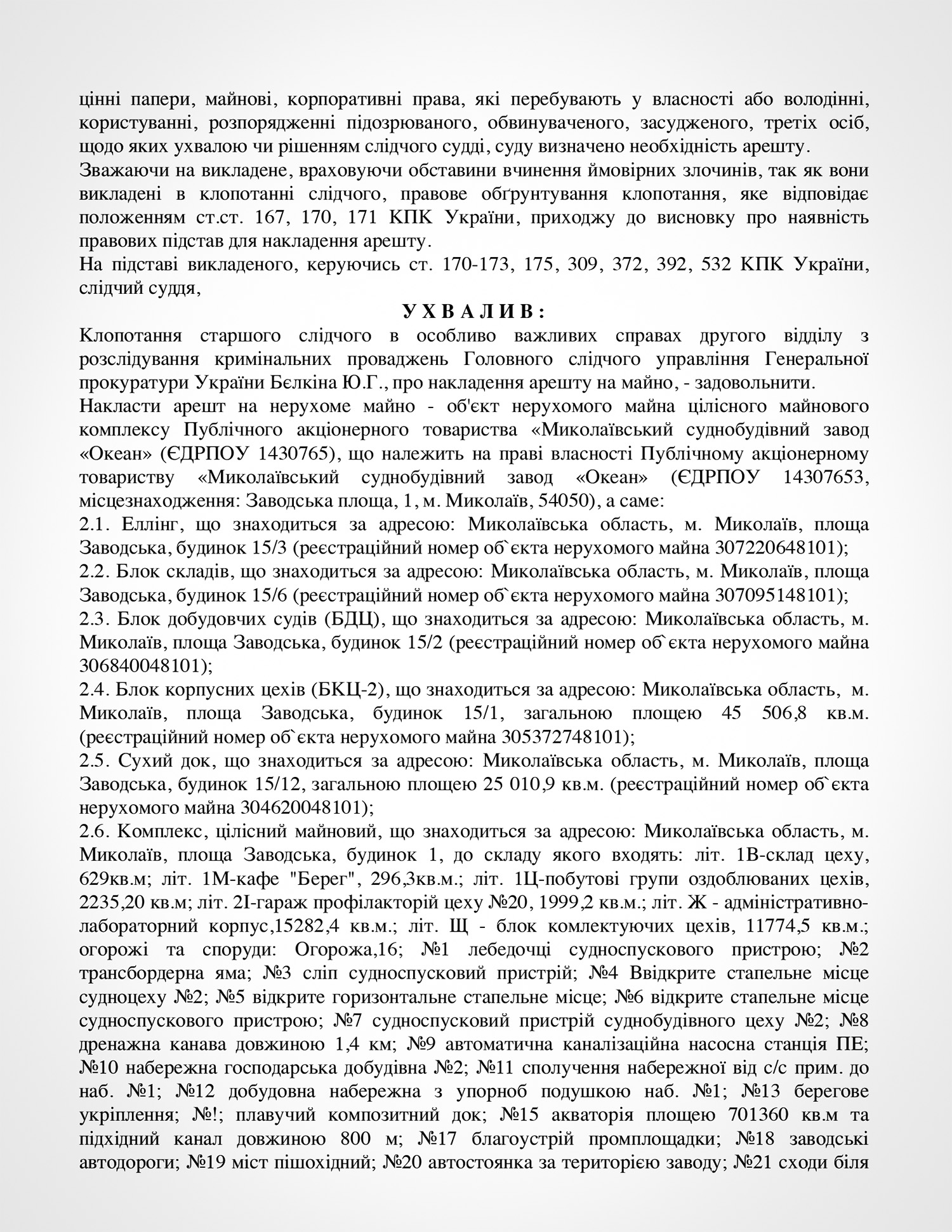Ранее сообщалось, что Национальная полиция Украины открыла уголовное производство относительно невыполнения решения суда об аресте имущества Николаевского судостроительного завода «Океан», которое в сентябре 2016 года было передано на ответственное хранение компании «Океан — Судоремонт», в части запрета заниматься хозяйственной деятельностью.