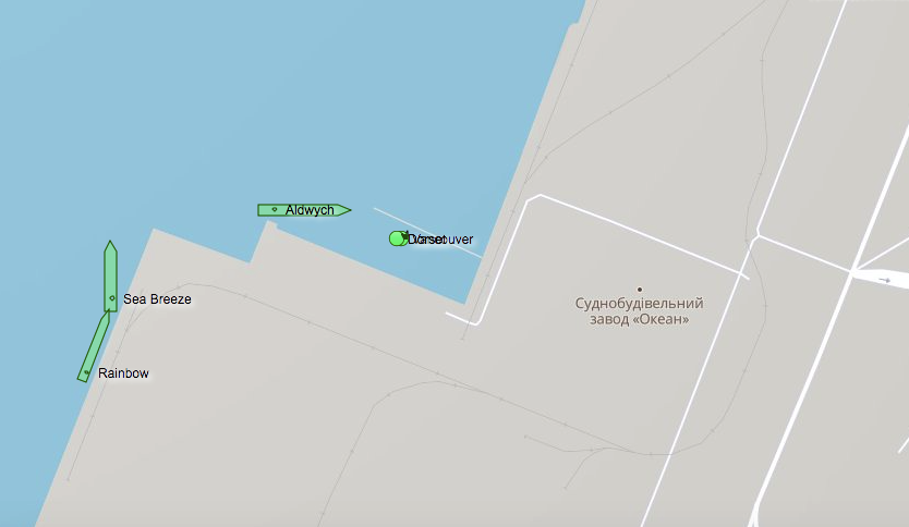 Состоянием на пятницу, 23 июня, около причальных стенок завода «Океан» находится несколько грузовых суден. Об этом свидетельствуют данные ресурса Marine Traffic.