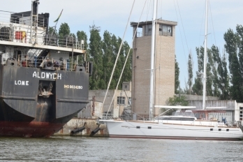 Также у причальной стенки судостроительного завода «Океан» находятся еще два судна. Сухогруз «Rainbow» построенный в 1976 и использующее под флагом Палау. Имеет размер в длину 114 метров и ширину 13 метров. Валовый тоннаж которой составляет 2457 тон. в Николаев прибыл сегодня, в 10:03, из Херсона. До этого был в Турции и России (Таганрог). Раньше назывался «Вера» и имело местом приписки город Калининград.