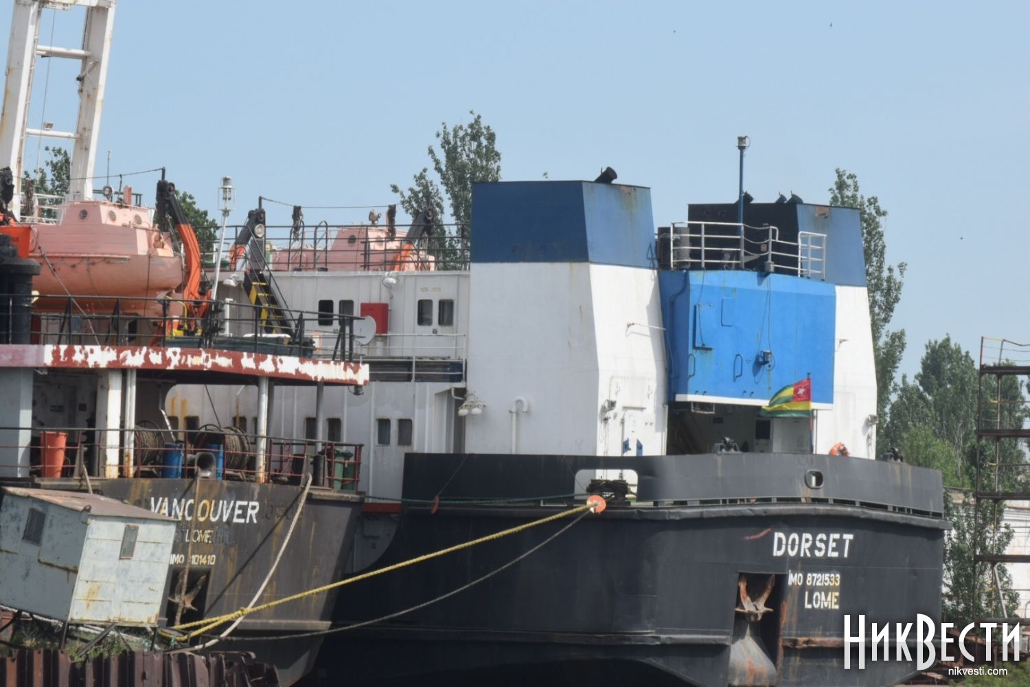 Грузовое судно «Dorset», которое также сейчас находится на территории арестованной акватории завода «Океан» в Николаеве, было построено в 1988 году и сейчас используется под флагом Тоголезкой республики. «Dorset» имеет размер в длину 116 метров и ширину 13 метров. Валовый тоннаж составляет 3086 тон. В Николаев «Dorset» прибыл в 10:03 из Ливана. До этого судно заходило в порты Греции, России и Турции.