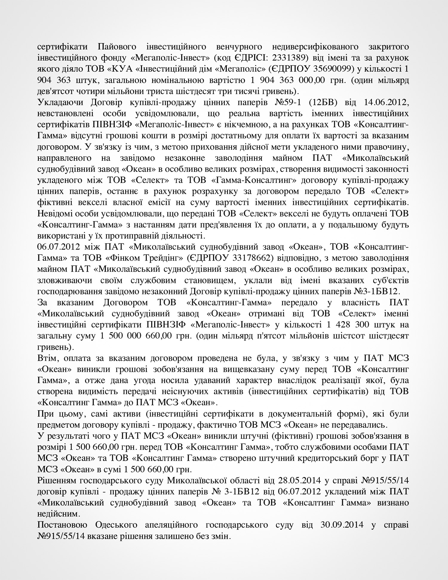 Как известно, постановлением Печерского районного суда Киева от 9 сентября 2016 года был наложен арест на недвижимое и движимое имущество ПАО «НСЗ «Океан» в Николаеве. Поэтому любая хозяйственная деятельность на территории завода является незаконной и такой, которая запрещена решением суда. Там не функционируют пункты таможенного и другого контроля, необходимые для осуществления законной портовой деятельности.