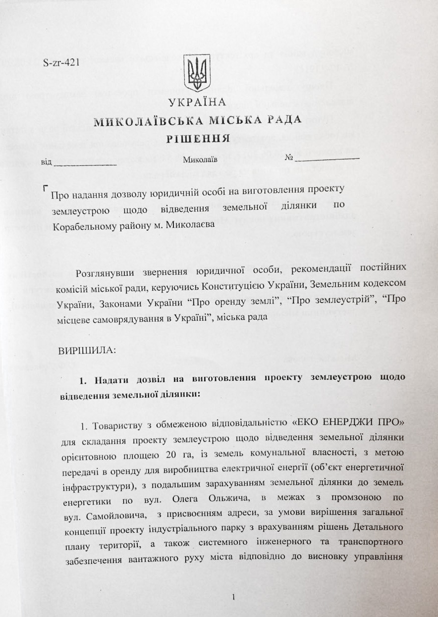 — Срочная необходимость заключается в том, что указанный объект — это пилотный объект размещения предприятия по производству альтернативной энергетики в Николаеве, и чем скорее он будет реализован, тем скорее Николаев сможет сказать, что он в числе городов, которые поддерживают современные предприятия, - сказал Андрей Яковлев.
